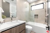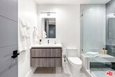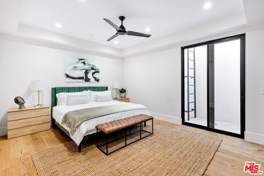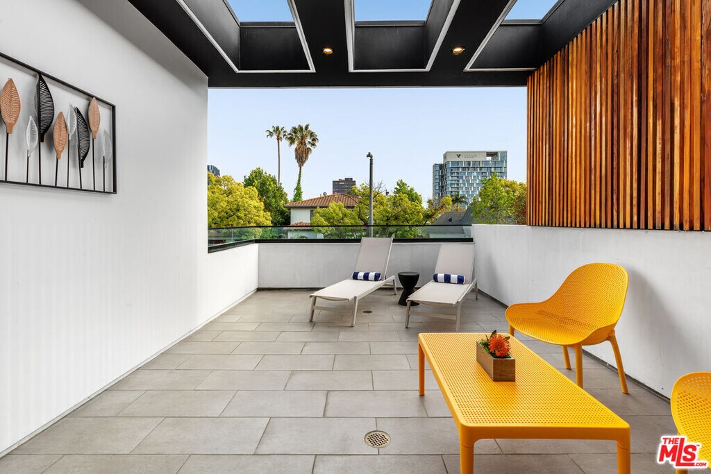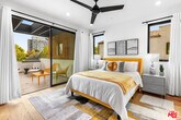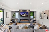 Welcome to this fully furnished, exquisitely done 2020-built Beverly Grove modern set behind gates and privacy hedges. Enter to discover wide-plank wood floors flowing throughout the open-concept floor plan. The living room includes picture windows and frosted privacy glass, adjacent to the formal dining room and partitioned by a floor-to-ceiling glass wine display. The family room is centered by a commanding stone fireplace and features Fleetwood doors that open to the outside, creating a seamless indoor-outdoor flow ideal for entertaining. The kitchen boasts custom cabinetry, a waterfall island with a cooktop, and top-of-the-line appliances. Downstairs includes a state-of-the-art theater with full-wall projection, surround sound, premium insulation, and amazing acoustics, as well as a game/entertainment room with a wet bar plus a guest bedroom. The primary suite offers a fireplace, private balcony with treetop and palm views, and a spa-like bath with elegant stonework, dual-sink vanity, extra-large shower with bench, soaking tub, and private toilet room. A junior primary has picture windows, a private terrace accessed by sliding glass, and an en-suite bath with a shower. Secondary bedrooms and bathrooms are spacious and light-filled. Upstairs also features convenient side-by-side laundry. The backyard includes a pool and spa with a water feature, an outdoor cabana, and a built-in fire pit. Enjoy a fantastic lifestyle in this prime Beverly Grove location near The Grove, Original Farmers Market, Melrose, Miracle Mile, Beverly Center, West Hollywood, Beverly Hills, and the very best of the Westside. Property will be available for showing on Nov 10th, 2025. MLS# 25599101