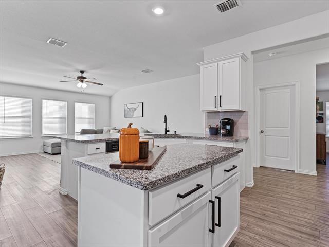 Beautiful well maintained one story 4 bedroom 2 bath home situated in the master planned community of Sutton Fields in desirable Prosper ISD. Open floor plan with extensive Luxury Vinyl Plank floors, updated light fixtures, modern hardware and gorgeous utility room mosaic accent wall. Kitchen with granite counter-tops, stainless appliances, gas range, island and an abundance of prep space. REFRIGERATOR, WASHER, DRYER included, dishwasher recently replaced. The primary suite is a dream with a luxurious updated shower and dual sinks. Relax outdoors on your covered patio with plenty of yard for kids and pets to enjoy. Sutton Fields offers amenities galore to suit every lifestyle with a club house, community pool, splash park and tennis courts. Close to hwy-380.