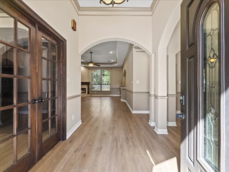 Welcome home to your private Westwood oasis,perfectly situated on a half-acre lot. It is updated with new wood floors,whole-house generator,and a water filtration system. The home office has custom built-ins and board-and-batten detail. The family room is anchored by a travertine tile gas fireplace,opens seamlessly to the kitchen and breakfast area,with granite countertops,stainless appliances,and an island. The secluded primary suite offers room for a sitting area and an en-suite bath with dual sinks,soaking tub,large shower,and separate closets. Two guest bedrooms and a full bath sit on the opposite side of the home,along with a powder bath and oversized laundry room. Outside,the extended covered porch overlooks the expansive backyard,with a horse trail behind the property and frequent deer sightings creating a serene,nature-inspired setting that feels like country living with suburban convenience. MLS# 6938452