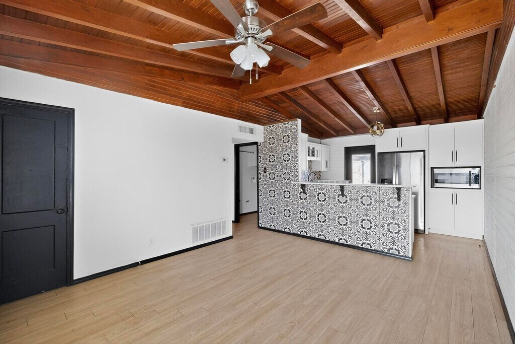 Welcome to the Charming 3 bedroom, 1 bath home in Central East El Paso! This delightful residence boasts a range of modern amenities, including refrigerated air for those hot Texas summers, washer/dryer hookups for your convenience, and a carport to protect your vehicle from the elements. The covered patio is perfect for outdoor entertaining, while the large backyard offers plenty of space for recreation. Inside, you'll find a stylish kitchen equipped with granite countertops, a chic backsplash, and a handy kitchen bar for casual dining. The home's ceramic tile flooring is both durable and easy to clean, and the cathedral ceilings add a touch of elegance to the living spaces. Plus, with easy access to I-10, commuting and travel are a breeze. Experience the comfort and convenience of this El Paso gem today! All El Paso Rentals residents are enrolled in the Resident Benefits Package (RBP) for $45.95/month which includes renters insurance, credit building to help boost your credit score with timely rent payments, $1M Identity Protection, HVAC air filter delivery (for applicable properties), move-in concierge service making utility connection and home service setup a breeze during your move-in, our best-in-class resident rewards program, and much more! More details upon application.