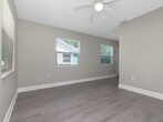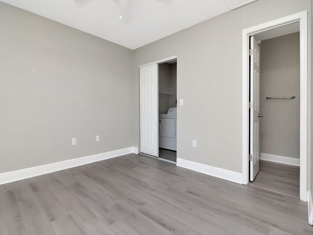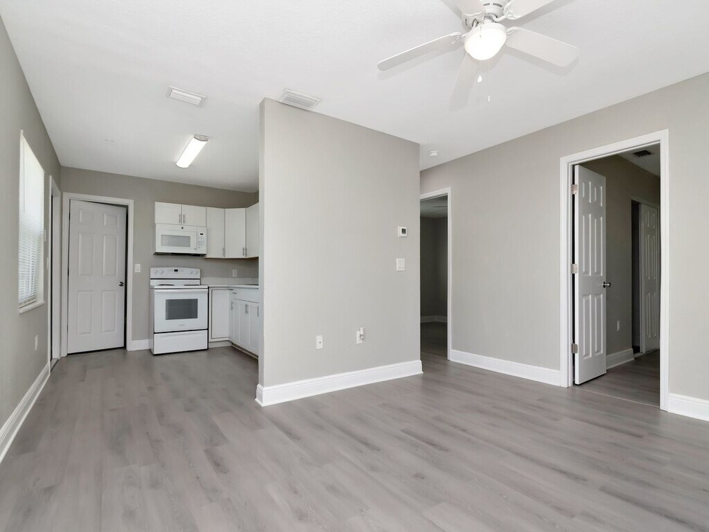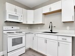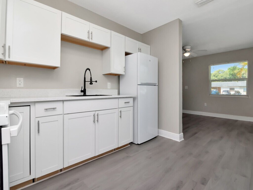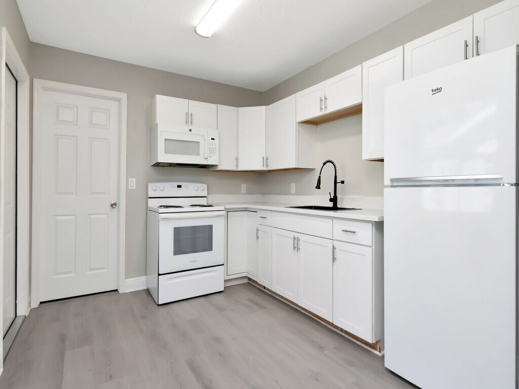 Welcome to this completely renovated, move-in ready unit that looks and feels brand new from top to bottom. Every detail has been thoughtfully updated with modern finishes throughout — all you need to do is unpack. Fresh, Modern Interior The entire unit features brand-new luxury vinyl plank flooring in a warm gray tone that flows seamlessly through every room. Fresh neutral paint, crisp white baseboards, and ceiling fans in every room give the space a clean, airy feel that's easy to make your own. Updated Kitchen The kitchen has been fully renovated with all-new white shaker cabinets, sleek brushed nickel hardware, stone countertops, and a stylish matte black pull-down faucet with an undermount sink. Includes a full suite of white appliances — refrigerator, electric range/oven, and over-range microwave. 3 Spacious Bedrooms All three bedrooms are generously sized, each featuring ceiling fans, large windows with natural light, and ample closet space with sliding doors. 2 Full Bathrooms Two full bathrooms serve the unit, including one walk-in shower and one with a tub/shower combo. In-Unit Laundry A full-size washer and dryer are included right in the unit — no trips to a laundromat needed. Bright & Open Layout Large windows throughout bring in abundant natural light, and the open-concept flow between the kitchen, dining, and living areas makes entertaining easy. Key Features at a Glance: 3 bedrooms · 2 full bathrooms · New luxury vinyl plank flooring throughout · Ceiling fans in every room · Fully renovated kitchen with new cabinets & countertops · Full appliance package included · In-unit washer & dryer · Fresh paint & new fixtures · Move-in ready
