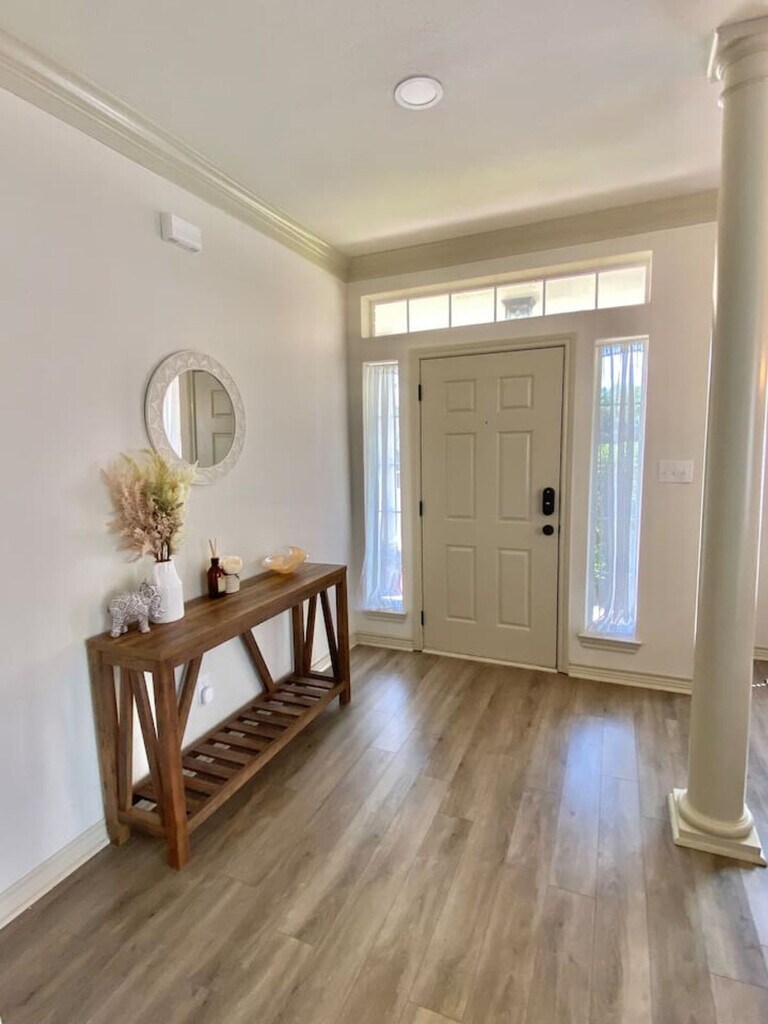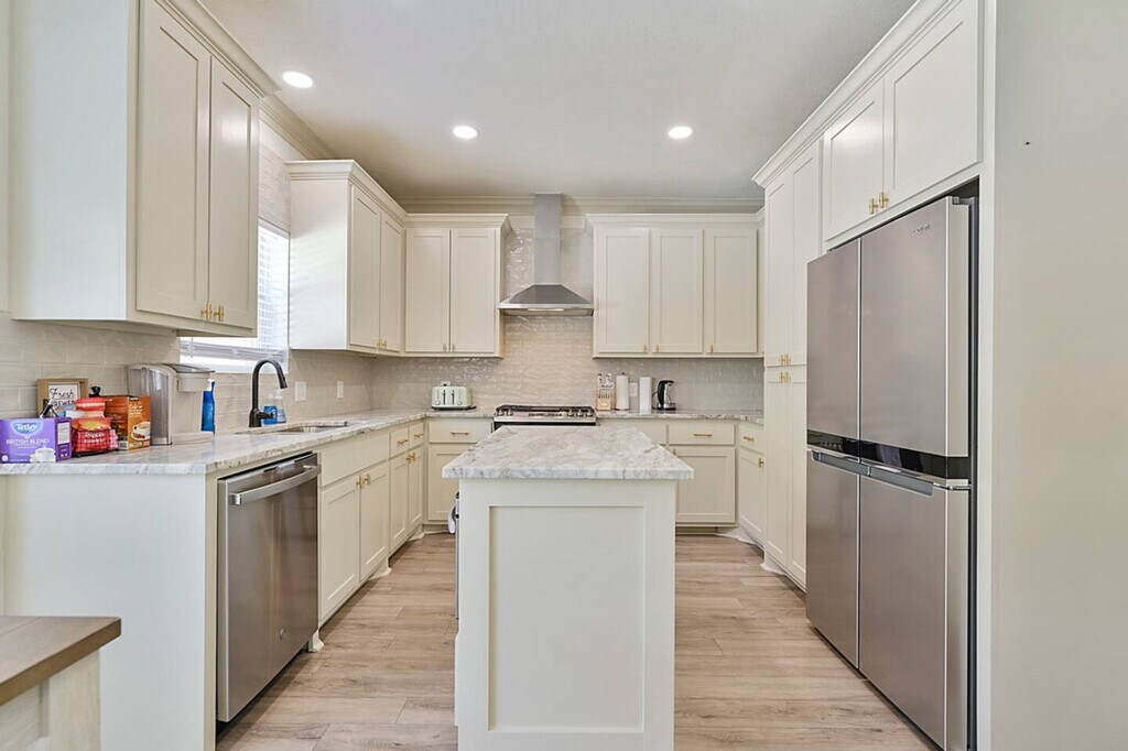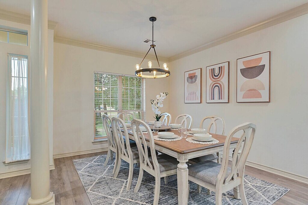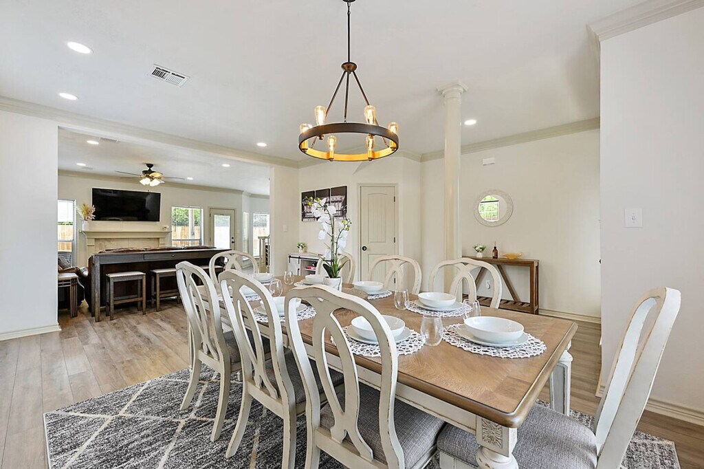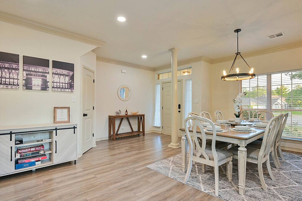 Feel at home in this Aggieland retreat, designed for entertainment, relaxation, and unforgettable gatherings. This spacious home is perfect for families, friends, or game-day getaways. This home features a chef’s kitchen with a five-burner gas cooktop, stainless-steel appliances, prep island, and breakfast area for casual dining. Enjoy the upscale comfort with elegant, earthy tones, a cozy fireplace, and a formal dining area. There is a casual living room with a big-screen TV, board games, and space to relax. A gas grill and shaded outdoor dining are available for backyard meals, as well as poolside lounging and outdoor games like cornhole. This is a pet-friendly property with a pre-approved Pet Addendum and fee. Located less than 15 minutes from Texas A&M University and near Aggie Football Shuttle Stops for stress-free game-day travel, this home is also 12–15 minutes from Downtown Bryan. The main intersection is Boonville Rd & Copperfield Dr. Smoking is not allowed in or on the property. If there is any evidence of smoking, $400 will be retained to deodorize the home. Do not turn the thermostat below 69 during the summer, as the unit could freeze, and the guest will be charged the cost to repair the heating/cooling system. When leaving in the summer, turn the thermostat up to 80 degrees. When leaving in the winter, turn the thermostat down to 60 degrees. People other than those accounted for in the booking agreement may not stay overnight. If unauthorized guests are found, a fee of $300 will be retained, plus $25 per person. Parties are prohibited. If the cleaning crew finds that the property has been left excessively dirty, you will be billed for the additional cleaning time at a rate of $50 per hour. If feminine products or other products besides toilet paper have been flushed and clog the plumbing system, the guest will be charged the cost of the plumbing repair. Fires are not allowed on the property, and absolutely no candles may be burned in the house or on the property. No trash or other items may be left on the property or outside the front door. All trash must be bagged when placed in the dumpster. There will be a $20 charge if this rule is not followed. If a guest wishes to have an event at the property, permission must be obtained, and an event fee will be added. The property may have one or more actively recording cameras overlooking the entrance, driveway, and backyard areas, which record audio and video. All devices are on the exterior of the property. A maximum of three pets (any breed, any size) are allowed in this pet-friendly property if agreed upon prior to booking. If any pets are found in the properties without previous agreement, the guest will be fined a pet deposit, and the booking will be terminated. All pets must be kenneled while unsupervised or while the guest is gone. If guests are leaving the property or unable to supervise, the animals must be kenneled inside. No pets are to be outside unsupervised. Guest’s pets must be housetrained, avoid excessive barking, and not get on furniture. Guests must pick up after their pets in the yard, neighborhood, and parks. Pet deposits are $200. [SI]