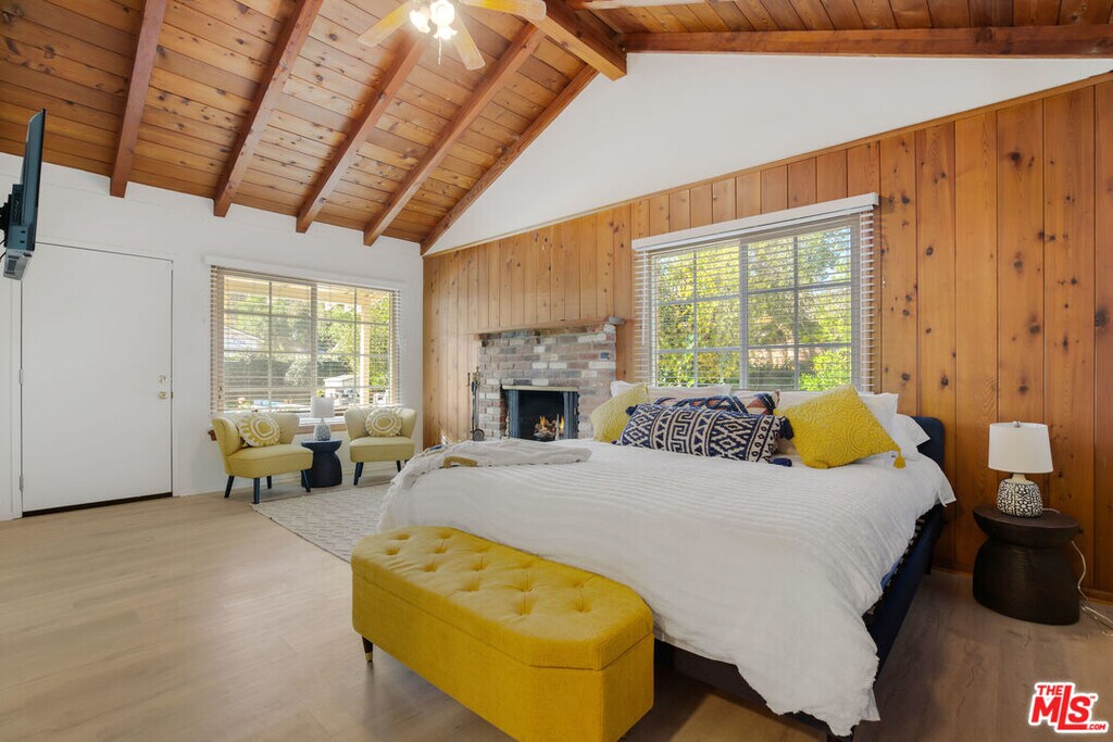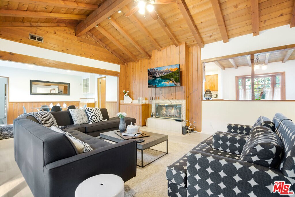 FULLY FURNISHED AND FULLY EQUIPPED This 4-bedroom and 3.5-bathroom with a bonus room with sofa and desk 2,256 square foot bohemian home in Woodland Hills, California. Nestled in the Walnut Acre neighborhood close to Malibu and Universal Studios, your favorite theme park and the beach will always be close by when you desire to have a day out in the California sunshine. A 17,000 square-foot lot, this property comes with a spacious patio, an Olympic pool, a large side yard, and spacious sunroom with skylights that overlooks beautiful nature and greenery. This home delivers the perfect amount of luxury and serenity for both long-term and short-term stays, especially with room for 2 to 3 cars! The master bedroom features a king-sized bed, a custom walk-in closet, and a luxurious ensuite bathroom with a large shower. Open the blinds and natural light will bring the space to life, flowing from the living room into the kitchen and dining room. If living space isn't enough, work in a bonus room with a desk, making work from home a breeze. Nestled in a cul-de-sac in Walnut Acres, this home delivers a relaxing residential experience. Enjoy evening movie nights with smart TVs in every room or game nights in the sunroom with foosball, air hockey, and ping pong tables. Better yet, cook up 5-star meals in a white and bright kitchen that offers high-end stainless-steel appliances, wood cabinets, double wall ovens, and a modern gas cooktop. No matter the occasion, this bohemian inspired home is yours for the taking, so pack a bag and come experience what Woodland Hills has to offer. Price reflects year lease please inquiry for short term. MLS# 25608369