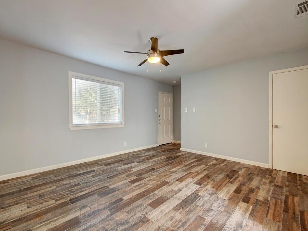 View of Green-space! Ride your bike to the Muller District! Wood look flooring throughout downstairs, fenced in backyard, private deck overlooks green space! Park like setting. Large primary bedroom. Large stainless fridge has replaced one in photos. Enjoy nature in your backyard with fast access to downtown. Only 12 minutes to UT. Close to Muller and Burnet!!! Washer /dryer hook-ups in unit. AVAILABLE NOW. Professionally managed. All approved applications will be subject to verified online income screening. A fee of $15 will be charged to the applicants for this service in addition to the initial application fee. depending on the PetScreening Risk Score. Morris Green uses Petscreening . charges a screening fee per pet.