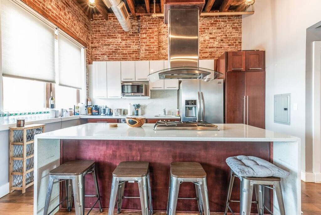 Experience the charm of a SOHO-style loft with this exquisite apartment, designed for the discerning cosmopolitan client. Featuring an open living room, soaring 16-foot ceilings, exposed wood beams, exposed brick walls, an oversized skylight, and a custom European kitchen with stainless steel appliances and a quartz countertop, this apartment invites you to feel at home. This apartment is my personal residence, and while most personal belongings will be put away during your stay, you will find useful items in the cabinets and fridge, such as almond milk, condiments, and spices, to enhance your stay. Parking can be challenging to find during late evening hours, but there is always parking available on Paterson Plank RD, about a 5-7 minute walk from the apartment, located behind the Food Bazaar Supermarket. Ideally located just four minutes from Jersey City, seven minutes from Hoboken, and roughly 15 minutes from NYC, this apartment offers convenient access to major attractions. Metlife Stadium is 14 minutes away, Newark Airport is 20 minutes away, and Nickelodeon Universe Theme Park is 15 minutes away. Situated between two beautifully historical churches and close to bars and restaurants, the apartment is on a very quiet street. Union City, known as the 'Embroidery Capital of the United States' and 'Little Havana on the Hudson,' offers rich cultural experiences, including the nation's longest-running passion play and the annual Cuban Day Parade of New Jersey. Public transportation options include NJT buses 123 and 125, with convenient stops nearby, and Uber and Lyft are also popular and reliable. Noise monitoring devices are installed in the living room and dining area. Quiet hours are from 9 PM to 10 AM, and conversations, TV, and music should be respectful during these times. Non-registered guests and visitors are strictly prohibited, and parties, small gatherings, events, photography, and filming are not allowed. Violations of these rules can result in a $1,000 fine, cancellation of your booking, and police eviction. If the exterior camera is purposely blocked or covered, a $1,000 fine will be issued. Please wash your dishes before check-out, and do not flush anything other than toilet paper down the toilet to avoid plumbing issues. Check-out is at 10 AM sharp, and a $200 late fee will be charged if the apartment is not vacated on time. Any stains, odors, or damages to furniture or appliances will be your responsibility.