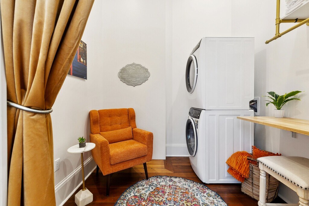 Completely restored Victorian Double in the heart of the vibrant Frenchmen Street scene. This fully furnished beautifully decorated and light filled unit features two ensuite bedrooms (one on each floor) with full baths and full-size closets. With high ceilings, original wood floors and an incredible floor plan that includes an eat in kitchen, bar, 1st floor dual function office/laundry room, second floor office/reading loft, storage closets, fenced back yard and a second-floor balcony as well as an inviting front porch, pack your bag and call this one home! The essence of New Orleans is reflected in the thoughtfully curated art collection featuring local artists and mixed media wall hangings as well as the luxurious yet comfortable furnishings. Entertaining is a breeze with the built in bar adjacent to the chef's kitchen with an oversize island with ample seating, gas range oven and new stainless-steel appliances. High speed internet is included. Pets allowed on a case-by-case basis with landlord approval.