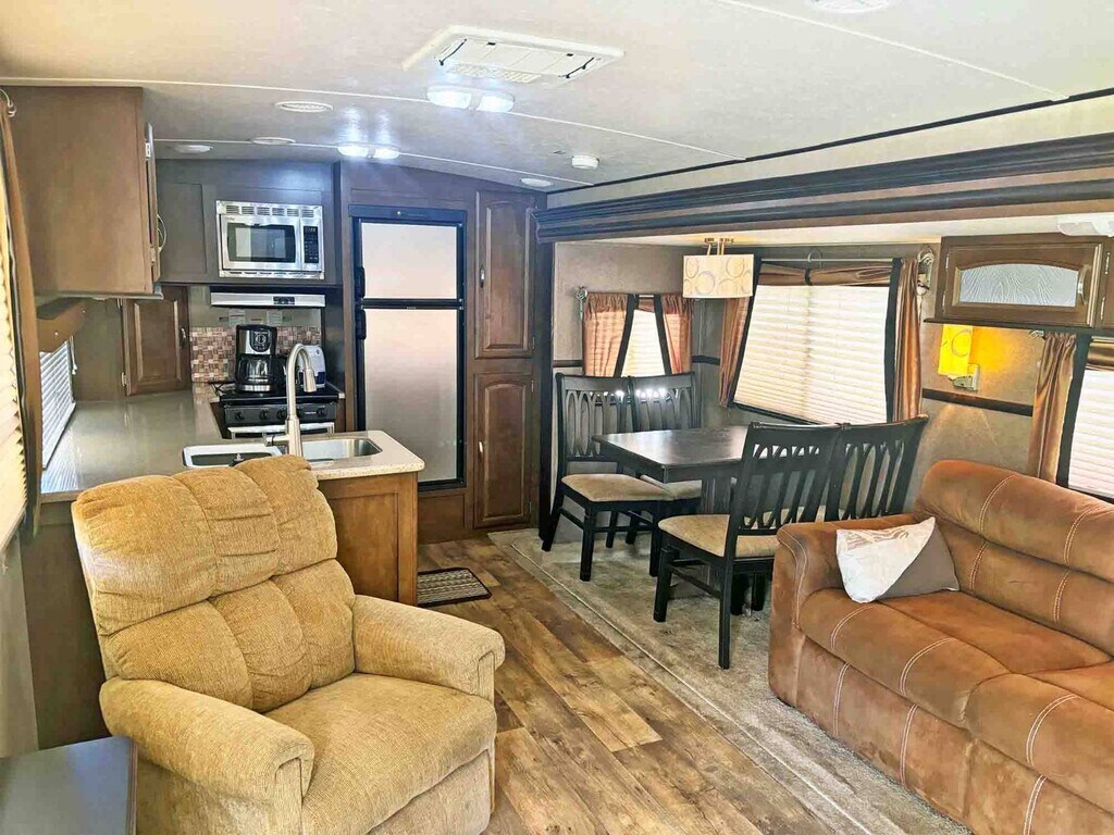 Enjoy comfort and convenience in this 28ft 2015 Forest River RV for rent in Tropical Gardens. This well-kept 1-bedroom, 1-bath home offers a cozy living space perfect for seasonal or long-term stays. Inside, you'll find everything you need for easy Florida living - including a comfortable layout, modern features, and plenty of natural light. Whether you're relaxing indoors or enjoying the warm breeze outside, this RV provides a welcoming retreat in a peaceful, gated community setting. Located in the beautiful Tropical Gardens RV Park Community, you'll be surrounded by lush palm trees, pristine grounds, and friendly neighbors. Take a dip in the pool, join community events, or explore the nearby attractions - including Siesta Key Beach, Downtown Sarasota, and local shopping just minutes away. With both indoor and outdoor amenities, manicured scenery, and a true sense of community, Tropical Gardens offers everything you need to experience your best Florida lifestyle!