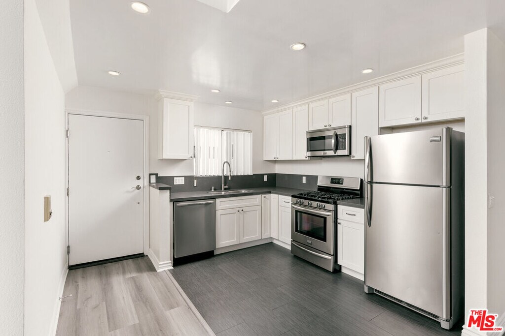 TOP FLOOR Remodeled loft style CORNER UNIT with an abundance of light and only one common wall. 30 feet high ceilings with lots of windows that greet you as you enter. Kitchen has stainless steel appliances & quartz countertops. The living room has a fireplace and patio. Large primary bedroom on the main floor with a huge walk-in closet, a second patio & vaulted ceilings. 2nd floor has another bedroom and bathroom. Central-AC and lots of extra closet space in the unit. Two side by side parking spots in a gated garage. This is a small 10 unit building in the heart of Valley Glen in Van Nuys. PET FRIENDLY MLS# 25614381
