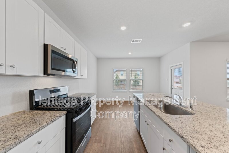 Applicants must have a 600+ credit score & income 3 times the monthly rent. Please provide 2 months' pay earnings statements. Apply at . Pay the APP fee online - Separate Applications for everyone over 18. Roommates must qualify individually. 1 Pet only; Pet Screening required. Security Deposits are due 24 hours after application approval; an Administration Fee of $100 is due at move-in. 30-day max move-in hold. AGENTS, THE SHOWING COMMISSION IS $350 - PLEASE SUBMIT A COMPENSATION AGREEMENT BETWEEN BROKERS (TXR-2402), A W9 & YOUR INVOICE, INCLUDING YOUR TENANT'S NAME FOR COMPENSATION. Well-designed two-story home offering three bedrooms, two and a half baths, and a two-car garage. The entry opens to an impressive family room that flows seamlessly into the kitchen and dining area, creating an open-concept layout. The gourmet kitchen features granite countertops, stainless steel appliances, a large breakfast island, and a spacious pantry. A convenient powder room is located just off the entry foyer. Upstairs includes the primary suite, secondary bedrooms, a full bathroom, and a utility room. The primary bedroom offers a well-appointed en-suite bath with ample shelving and a large walk-in closet. A covered back patio extends from the dining area, providing comfortable outdoor space.