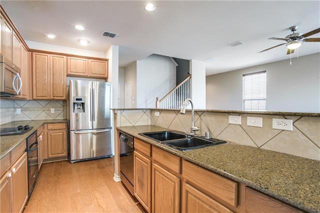 Lovely 3 bed 2.5 bath townhome located in well kept neighborhood of Oak Point Estates. Conveniently located close to 75, Oak Point Park and Oak Point Recreation Center. Granite counters, large island in kitchen, opens to breakfast and family room. All bedrooms up with small desk area in upper landing. Master bath has double vanities, garden tub, separate shower and walk in closet, laundry area on second floor. Includes refrigerator.