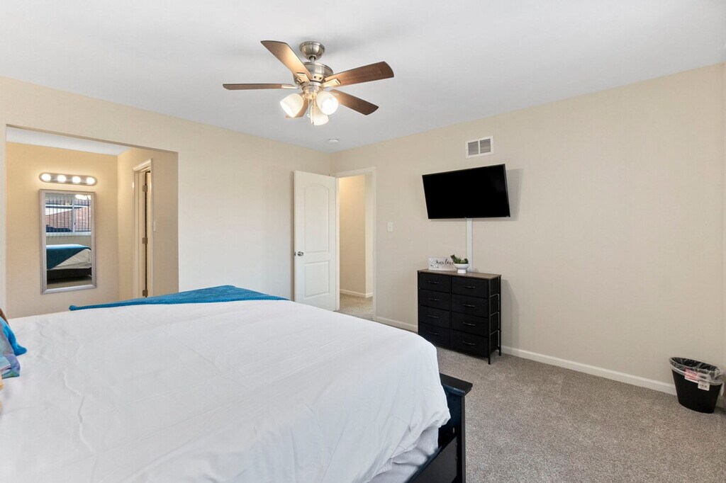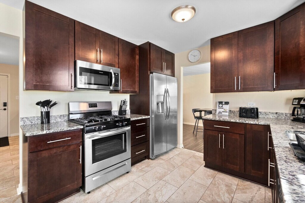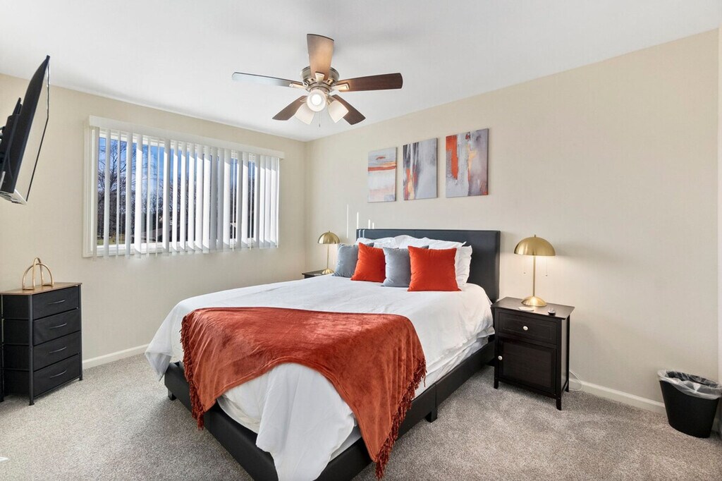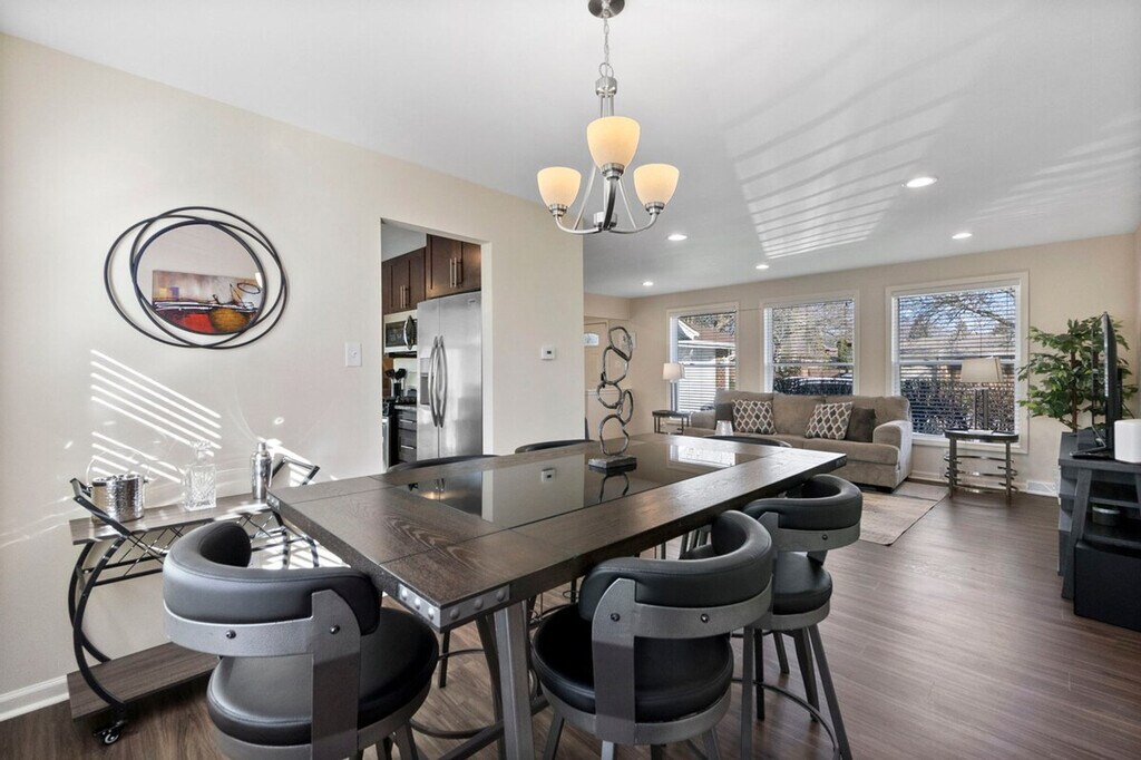 Welcome to this beautiful 2200 sq ft home located in the south suburbs near Tinley Park, just minutes away from I-57 and I-80. This spacious home features five bedrooms and two bathrooms, offering a comfortable stay for families or groups. One bedroom is furnished with a king-size bed, three bedrooms have queen-size beds, and one room includes two twin beds. The living room provides space for an air mattress, making a total of seven beds available. Feel at home with a fully equipped kitchen that includes plenty of utensils, pots, pans, and appliances. This single-family home offers driveway parking with additional street parking if needed. The home is children-friendly, providing amenities such as a pack and play sleeper, a stroller, a high chair, and a booster seat. Enjoy the latest technology with seven LCD televisions featuring access to Hulu, Disney, ESPN, Netflix, and Prime Video. The home is equipped with 150 Mbps internet speed and Wi-Fi throughout, along with a soundbar in the living room. For entertainment, there are over 50 board games, playing cards, an arcade cabinet with 2000 classic games, an air hockey table, and a pinball machine. The kitchen is stocked with over 10 cooking spices and three types of cooking oils for a delightful meal experience. Driveway parking is available with additional street parking if needed. The home is equipped with premium amenities such as an arcade cabinet with 2000 classic games, an air hockey table, and a pinball machine for entertainment. Located in the south suburbs, this home offers easy access to Tinley Park and major highways I-57 and I-80, making it convenient for exploring the surrounding area. Enjoy the suburban charm while being just a short drive away from local attractions and amenities. Failure to submit ID and security fees prior to check-in will result in no refunds and access to the property will not be granted. Fees may vary for long-term stays. Reservations are not accepted without security fees paid upfront. No exceptions to this house rule.
