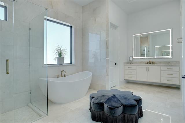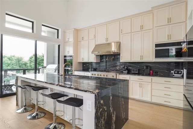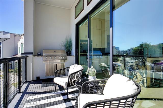Executive Lease offering short term options! Welcome to sleek, modern retreat in the vibrant heart of Plano. Striking entryway leads to game room, offering covered patio access & well appointed wet bar. 2nd level, experience main living area, suffused with natural light, featuring towering ceiling, fireplace, & magnificent views. Kitchen, stylish & practical, boasts generous cabinet & pantry storage, lavish counters, sizable waterfall-edged island, & superb appliances. Adjacent covered balcony includes built-in grill. Split layout gives additional privacy to spacious owner's suite which offers private balcony & sumptuous en suite with dual vanities, 2 walk-in closets, frameless glass shower, & indulgent soaking tub. 3rd level, you'll find a guest bedroom with full bath, a powder room, & fabulous space to relax or entertain with indoor loft, two covered deck areas, & one open deck. All levels accessible via private elevator. Close to desirable shops & restaurants at Legacy West.