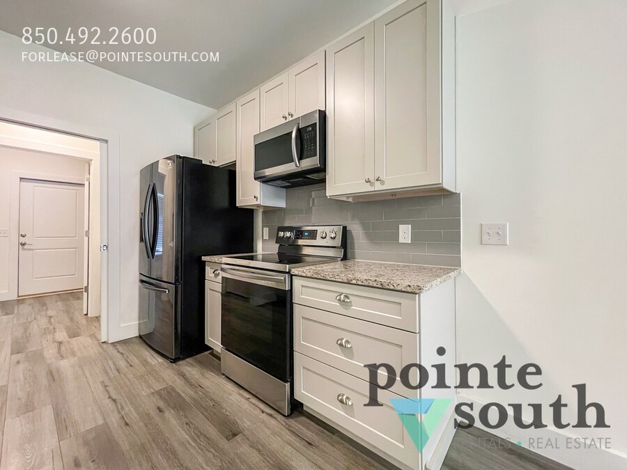 Adorable and energy efficient, 2BR/2BA duplex within the heart of Pensacola. This home is located off of Airport Blvd near the interstate and a few minutes from many shopping centers, restaurants, the hospital, and Pensacola state college. Inside the home you'll find an open concept living room and kitchen with easy to maintain luxury vinyl floors through out. The kitchen has modern finishes that include soft close grey cabinets, granite counter tops, an extra large stainless steel sink, and high quality Samsung appliances. Next to the kitchen is the laundry closet and a smart top load washer and dryer set. The master bedroom is spacious and includes a large master bathroom with a dual vanity, granite counters, and shower/tub combo. The backyard is surprisingly spacious and is fully fenced. No need to worry about mowing the lawn as lawn service is included in the rent! Basic lawn service is included in rent. Tenant is responsible for all other utilities. Property will be held off market up to 14 days with Property Holding Fee with approved app. Lease Prep Fee of $75 is due prior to move in. Approved pets require $400 pet fee per pet. Renters insurance is required.