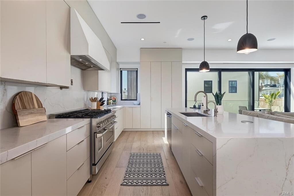 - Welcome to 622 1st Place, a sleek, contemporary quiet and detached rear townhome situated in one of most sought-after neighborhoods in Hermosa Beach. Built in 2022 and exceptionally maintained, this like-new residence offers a modern coastal lifestyle just moments from the beach, The Strand, and the lively energy of Pier Avenue — while enjoying the tranquility of a quiet, rear-unit location. Spanning four bedrooms and three and half bathrooms across three beautifully designed levels, the home effortlessly balances functionality with sophisticated style. The heart of the home is an open-concept living space with wide-plank wood flooring, abundant natural light, and a seamless connection to a private balcony — perfect for relaxed mornings or evening gatherings. The chef’s kitchen is a showstopper, featuring top-tier stainless appliances, custom cabinetry, and a sleek island ideal for casual dining or entertaining. A private in-home elevator services all levels, adding everyday convenience for moving between floors — whether transporting groceries, luggage, or guests. The four spacious bedrooms include a luxurious primary suite with a custom walk-in closet and a spa-inspired en suite bath, complete with dual vanities, a freestanding soaking tub, and an oversized walk-in shower. Secondary bedrooms are generously sized and versatile, ideal for guest rooms, a home office, or a gym. Crowning the home is an expansive rooftop entertaining deck with sweeping ocean views, offering a perfect setting for sunset dinners, weekend lounging, or festive gatherings under the stars. An extra-large garage provides ample space for multiple vehicles, storage, and beach gear or even entertaining— a prized amenity in this beachside community. Set in a friendly, walkable enclave of Hermosa Beach, residents enjoy easy access to award-winning schools, scenic coastal bike paths, and some of the South Bay’s best dining, coffee shops, and boutique fitness studios. With its blend of modern design, thoughtful amenities, and a prime location just a short stroll from the sand, 622 1st Place captures the essence of elevated Southern California beach living. Listing provided by: Burke Stefko of Lending Corner, Inc LA State License 1976226 Listing posted by Angelo Losan [SYNDID 4144752 12042025]