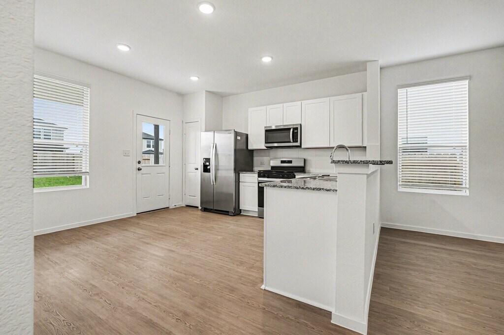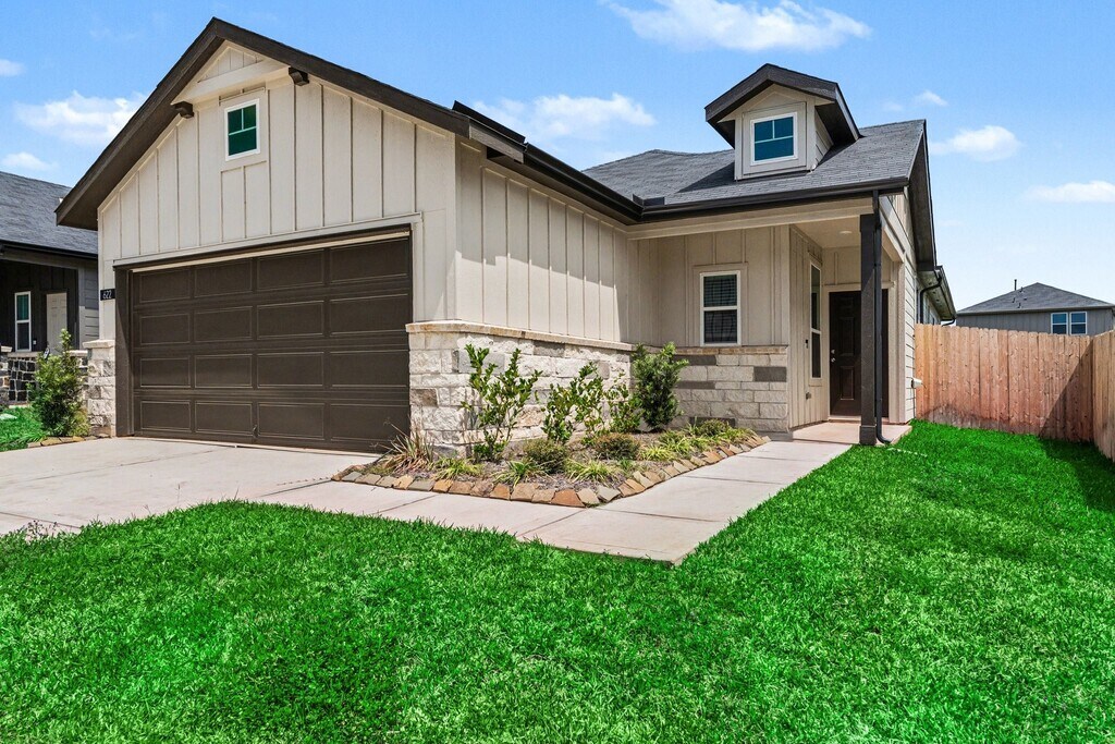 Be the FIRST to live in this beautifully designed,brand-new home in Montgomery! This 3-bedroom,2-bath residence offers a bright,open-concept layout with modern finishes and a seamless flow between the kitchen,dining,and living areas—perfect for everyday living and entertaining. The spacious kitchen features contemporary cabinetry,ample counter space,and a breakfast bar overlooking the main living area. The private primary suite offers a comfortable retreat with an en-suite bath and walk-in closet. Secondary bedrooms provide flexibility for guests,a home office,or additional living space. Enjoy a large private backyard and a quiet,growing community with convenient access to Lake Conroe,shopping,dining,and major roadways. MLS ID 64175146