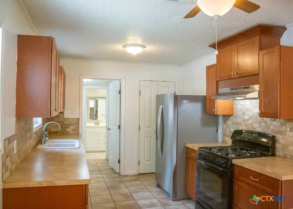 SPACIOUS home and FLEXIBLE floor plan to suit your living style. Open living room,dining and kitchen. Three bedrooms in front of house with adjacent bathroom with full tub and two sinks. There’s another room towards rear of house,converted from garage,with large closet and flexibility to be used as fourth bedroom,oversized office,workout room,game room,or whatever your family needs. This flex room is adjacent to recently styled and installed bathroom and inhouse laundry room with washer and dryer. Refrigerator also included. Fresh paint throughout. MOVE IN READY! LARGE LOT! Approximately ¼ acre corner lot with fenced back yard and massive two room SHED with electrical power and with potential to use as woodworking,hobby,storage or enhance to Accessory Dwelling Unit (ADU). LOCATION! Within ½ mile from Interstate 35 to get you to work,and within ½ mile from San Marcos River to float the day away! Within 5 miles to Texas State University and historic San Marcos square. Within 30 miles from many Texas Hill Country towns,events,venues,shopping and fun places. POSSIBILITIES: Family home,Friends home,Get-away home,Rental / Income producing property,short term or long term,students or other tenants.
