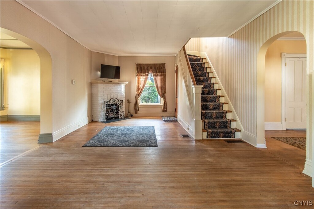 Introducing this beautiful 1800s architectural revival home that still boasts its historical charm,which I believe you might find appealing. As you enter the foyer,you'll immediately notice the exquisite craftsmanship and detailed painting and tile design. The two large living rooms,featuring a corner gas fireplace,once hosted many splendid events. An open hardwood staircase leads to the second level,where you'll find three spacious bedrooms and a full bath,offering comfortable living arrangements. The formal dining room includes a built-in corner china cabinet and original hardwood floors,which extend throughout the home,adding to its classic appeal. A convenient laundry room and half bath are located off the dining area for practicality. The uniquely designed kitchen features modern appliances,window bench seating with storage,and an island with built-in cabinets and drawers,providing both functionality and style. Off the kitchen,a versatile bonus room opens to a lovely deck and backyard,perfect for relaxation or entertaining. Additionally,the property includes a detached garage offering ample space for a vehicle,a workshop,and storage,which adds significance to the property. This home truly offers immense character and charm,blending historical elegance with modern conveniences. Please note that interested applicants will be required to complete an application,a credit/background check,and provide a security deposit. Pets welcome with permission,pet fee required. All showings require a completed questionnaire prior to viewings. This is also a strict no-smoking property to maintain its pristine condition.