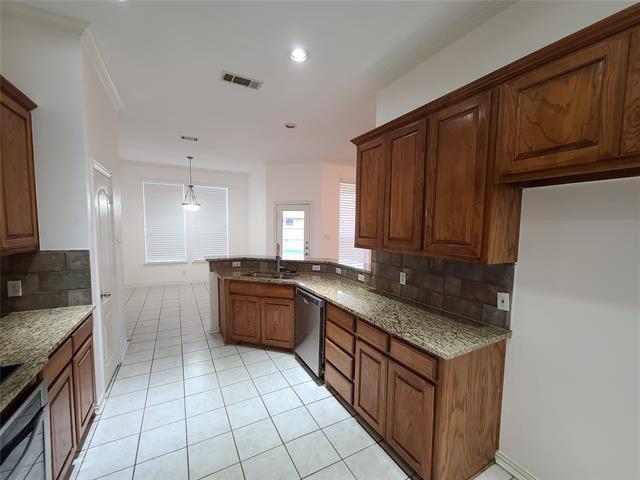 BEAUTIFUL Executive home in very desirable community. Four bedrooms and 3 FULL baths. Custom designer features throughout including vaulted and tray ceilings and plant ledges in most rooms. Cooks delight kitchen with NEWER GRANITE COUNTERTOPS, stainless steel appliances, and breakfast bar overlooking HUGE living area. Charming breakfast nook overlooks large lush back yard. Elegant master suite with luxurious master bath featuring a jetted tub, custom separate shower, and large closet. Nice size backyard with huge open patio accessible from the kitchen and master bedroom. Oversize formal dining room. This home is near shopping, schools, and restaurants. Zoned for Mansfield High School. Hurry! This will go fast!!