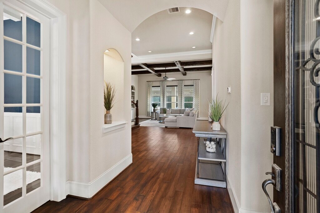 Perfectly balancing privacy and convenience,this elegant three-story home is located within the gated community of Talia Trails in Memorial West,in one of Houston’s most desirable areas. The open-concept first floor is designed for both everyday comfort and effortless entertaining,featuring a spacious family room that flows seamlessly into the kitchen and dining area. The kitchen is beautifully appointed with granite countertops,commercial-grade appliances,pot filler,breakfast bar,and a walk-in pantry. A private study and dedicated media room provide flexible living spaces. The home offers two primary suites,including a luxurious main retreat with a spa-inspired bath featuring dual vanities,a jetted tub,separate shower,and a generous walk-in closet. Situated on a corner lot,just minutes from CityCentre,Memorial Green,and Town & Country. Zoned to Spring Branch ISD. MLS# 28867198