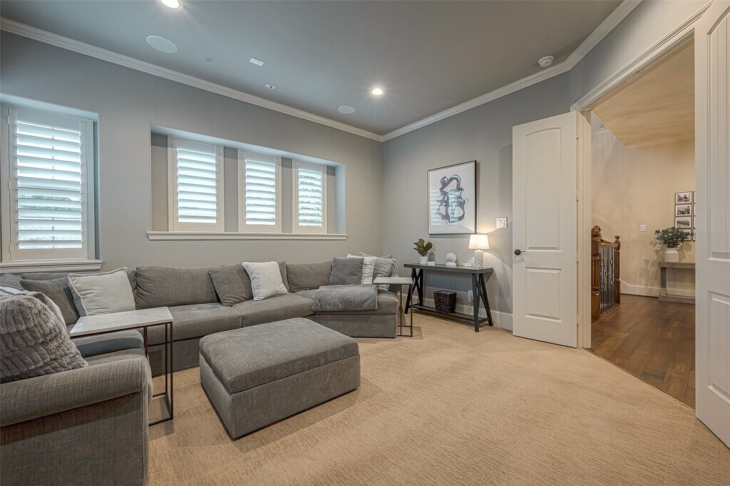 Stunning home within private community. Lock-n-go! Home is in pristine condition. Spacious rooms with immense amount of storage. Quiet enclosed back patio to enjoy evenings. Fabulous kitchen for those loving to entertain open to living area. Second floor features a media room,primary suite with wonderful ensuite,and two more bedrooms and laundry room. Top floor is perfect for company,teenager wanting own space or live in help. This room features very large closet and private bath,with small kitchen type area. This home is a must see! Home can be leased furnished also. MLS# 38268755
