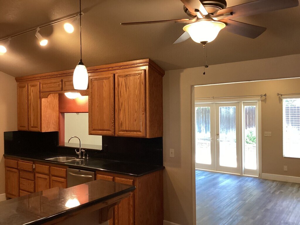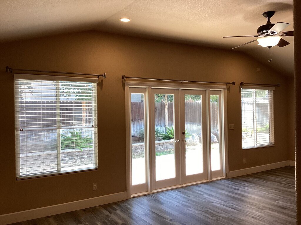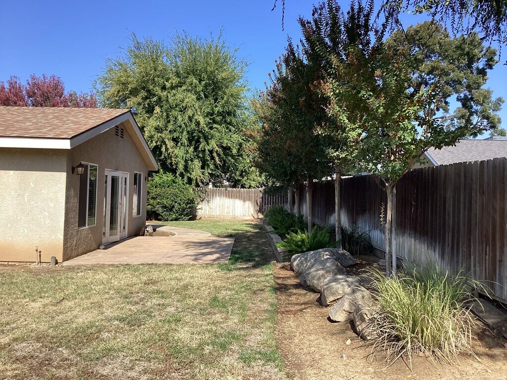 This home located on a corner lot has approximately 1539 square feet with a living room, family room/formal dining room, laminate flooring throughout, blinds, granite counters, gas range, dishwasher, garbage disposal, built-in microwave, laundry hookups in garage, central heat & air, ceiling fans throughout, gas fireplace, 2 car garage with electric opener, tankless water heater, huge front & backyard with automatic sprinklers, cement patio in backyard. Close to schools, parks, shopping. From N. Figarden Drive, Go West on W. Bullard Ave, then turn right on N. Constance Ave, left on W. Mesa Ave, then right on N. Ellendale. 1 year lease required. Renters insurance required. Pets negotiable (2 medium pets ok!).