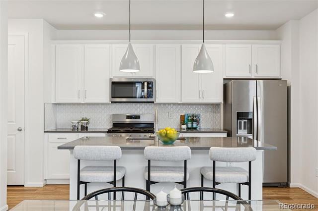 This exquisite home is designed to cater to your modern lifestyle. As you step inside, you are greeted by an open floorplan that seamlessly integrates the living, dining, and kitchen areas. The home is bathed in abundant natural light, enhancing the spacious feel and highlighting the modern finishes throughout. The high-end kitchen appliance package is perfect for culinary enthusiasts, complemented by sleek cabinetry and ample counter space. The living area features a cozy gas fireplace, providing warmth and ambiance during cooler months. The property boasts three generously sized bedrooms and three bathrooms. The large primary bedroom is a true retreat, complete with a spa-like en-suite that offers a tranquil escape from the hustle and bustle of daily life. A versatile loft area provides additional space for a home office, media room, or play area, adapting to your needs. Situated on a quiet, tree-lined street, this home offers a serene setting while still being conveniently located near local amenities and attractions. Modern lighting fixtures throughout the home add a touch of elegance and sophistication, enhancing the overall aesthetic. Contact us today to schedule a viewing and discover all that this property has to offer. Portable Tenant Screening Reports (PTSR): 1) Applicant has the right to provide Corcoran Perry and Co a link with a PTSR that is not more than 30 days old, as defined in§ 38-12-902(2.5), Colorado Revised Statutes; and 2) if Applicant provides Corcoran Perry and Company with a PTSR, Corcoran Perry and Company is prohibited from: a) charging Applicant a rental application fee; or b) charging Applicant a fee for Corcoran Perry and Co to access or use the PTSR. Corcoran Perry and Company may request a statement from the prospective Tenant that there has not been a material change in the information in the screening report, including the prospective Tenant's name, address bankruptcy status, criminal history, since the report was generated. Single Family Residence MLS# 8706158