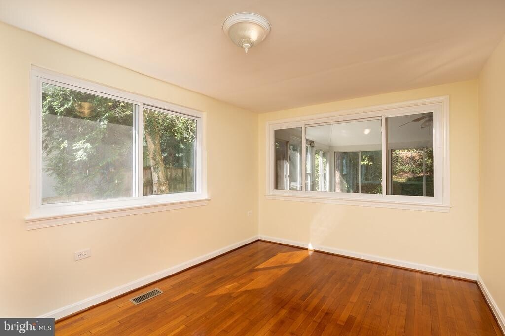 Welcome to this private oasis on a large lot offering 3 bedrooms and 1 full bathroom on the main level, plus a large multi-purpose room upstairs that provides endless flexibility. A grand foyer opens into an expansive living room filled with natural light and custom built-ins, while the cheerful breakfast room, just off the kitchen, provides the perfect place to start your day. Enjoy the serene backyard from the enclosed 3-season sunroom or the large deck, both perfect for entertaining or relaxing in privacy. The home sits on a wooded lot backing to park land offering peace and seclusion while still being just minutes from DC, MD, and VA. Additional highlights include a 1-car garage with extra storage space and twice-monthly lawn mowing included. Conveniently located near the C&O Canal, parks, trails, and public transit, this home combines comfort, charm, and commuter convenience.