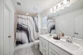 Welcome to your next home! This stunning 3 bed,2.5-bath home offers 2,500 sf of modern living space. The home features beautiful granite countertops,soft-close cabinets,and light dimmers throughout. It’s wired for surround sound and pre-equipped for TV mounting,making it perfect for entertaining.The first floor includes a versatile study that can double as a playroom or office,as well as a laundry room for added convenience. Upstairs,you'll find a cozy loft or game room,offering additional space for relaxation or play. The master bedroom boasts a picturesque view of the lake,providing a peaceful retreat. The home is equipped with smart technology,allowing you to control the air conditioning and heating via your phone. The backyard is fully fenced for privacy,and the extended front patio is a perfect spot to enjoy the outdoors. The stone facade on the front of the home is an upgraded feature that adds to its curb appeal. Don't miss out on this beautiful,move-in-ready home! MLS# 97554182
