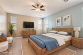 Need a SHORT-TERM RENTAL for a GREAT PRICE? This is for YOU! 3-6 months available. NEWER FLOORING downstairs is LUXURY VINYL PLANKING. Espresso cabinets & GRANITE countertops adorn the kitchen. OPEN FLOOR PLAN downstairs. DOWNSTAIRS BEDROOM and 3/4 bathroom. Primary bedroom is HUGE with a DELUXE BATHROOM, including a separate tub & shower, double-sink vanity, and SEPARATE MAKEUP VANITY! TWO WALK-IN CLOSETS add to the LUXURY of this primary suite. Upstairs has a comfortable LOFT with a Jack & Jill" bathroom that connects with the LARGE secondary bedroom. Backyard has HIGH-END turf by "Big Bully Turf". PAVERS across full lenth of the house in the back and also the LARGE SIDE yard. Driveway is extended and is 3 CAR WIDE. SOLAR PANEL PPA is paid for by the owner, which greatly reduces your power bill. GATED w/ a park & PLAYGROUND. Sorry, no pets. Super convenient location. Costco, Winco, Target, Hobby Lobby, Walmart & LOTS MORE within 2 miles."