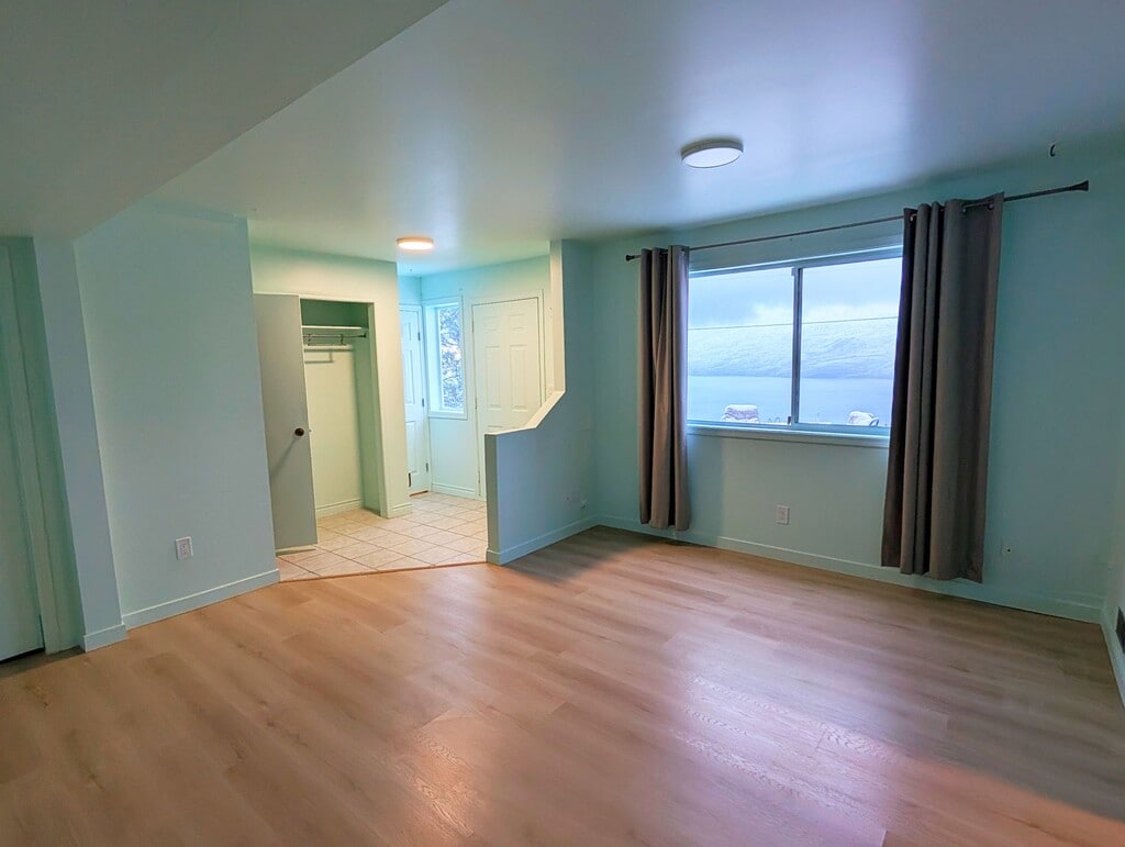 Bright, comfortable unfurnished 580 sq. ft. one-bedroom, one bath/shower (with grab bars) in ground floor suite, at the end of a quiet cul-de-sac (Bonnie Lane) above scenic Peachland, BC. All utilities included (ie. electricity, heating, water, sewer, garbage collection, air conditioning, TV, and Internet). Shared laundry. Private, front entrance. Use of front yard with wide panoramic view of Okanagan Lake. Off-road parking for one vehicle. 2 km from downtown Peachland and the bus stops at the end of the lane. We are pet friendly...if the pet is friendly! Close to forest walks and off-leash dog park. Nice neighbours. $1,650 per month. 6 month lease to start, then monthly. Damage deposit is half months rent. Pet deposit is the same. Tenant insurance is required. Must pass credit check and have references. No Smoking.