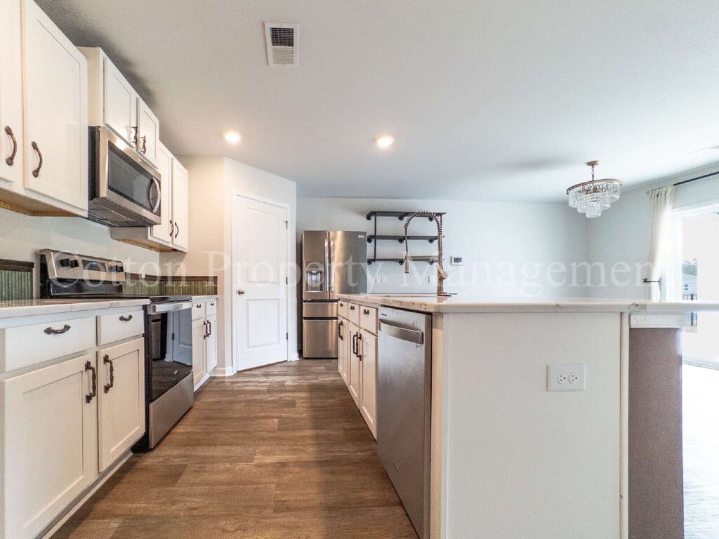 Experience the best of North Wilmington in this spacious home at Sidbury Station! Perfectly positioned near Hwy 40, you’ll enjoy a breezy commute to local attractions and the area's top shopping and dining hubs. This open 1,774 sq. ft. house featuring 4 bedrooms and 2 baths; Chef’s kitchen equipped with stainless steel appliances, a large center island, and a walk-in pantry. A generous primary suite plus three additional bedrooms for family or office space. A private covered porch, view of the pond and backyard fire pit to enjoy. High-end community amenities such as a swimming pool and clubhouse with a fitness center. Lots of outdoor fun at the multi-game court, and playground. Washer and Dryer included in the rent! Pet Friendly* Limit 2 pets with applicable fees and pet rent. Tenant responsible for lawn care. Professionally managed by Cotton Property Management representing the owner.Luxury Vinyl Flooring