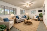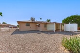 Discover your ideal retirement getaway in the active-adult community of Dreamland Villa! This beautifully updated rental offers 2 bedrooms,2 bathrooms,and a 2-car garage. A charming enclosed front porch welcomes you inside,where you'll find a bright,open living & dining area w/neutral paint & wood-look flooring in all the right places. The kitchen features built-in appliances,tile countertops,& ample cabinetry. The primary bedroom includes a walk-in closet & a private bath for added convenience. Enjoy year-round comfort in the carpeted,19' x 9' cooled Arizona Room not included in the square footage perfect for relaxing or entertaining without worrying about the weather. Out back,you'll appreciate a covered patio,mature citrus & pecan trees,& 2 storage/workshop spaces,one of which is wired with electricity. Additional perks include a large laundry & storage room,skylight in the kitchen,automatic front and back sprinklers,and an installed security system. Located in a highly desirable 55+ community offering pools,spas,activities,entertainment,and social events,this home is truly move-in ready. Your renters will love what they see!