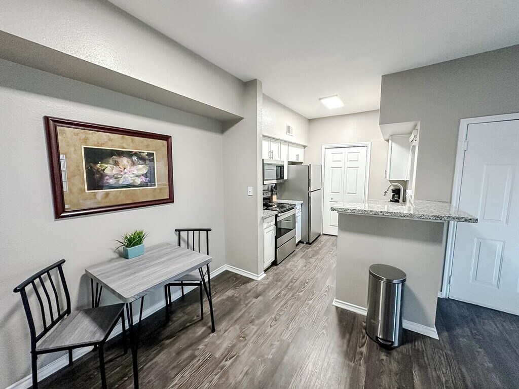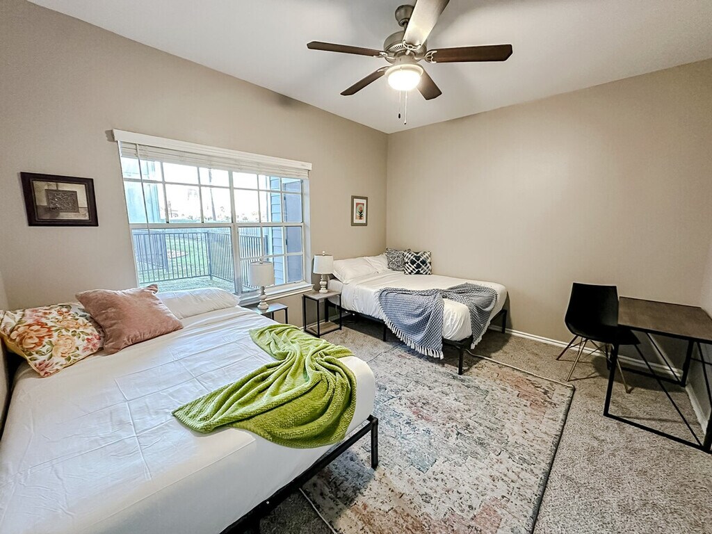Feel at home in this modern 1-bedroom apartment, designed for a relaxing and hassle-free experience. The apartment is fully furnished and includes a cozy living room, a functional kitchen, a comfortable bedroom, and a clean, well-maintained bathroom. For added convenience, the living room features a futon, perfect for extra sleeping space. Enjoy a comfortable stay with quality amenities and toiletries provided for your convenience. The apartment is thoughtfully equipped to ensure a pleasant and practical stay. Guests have one designated parking spot. Only certified service animals are allowed, and requests to bring a pet must be approved prior to booking. An additional pet fee will be applied after booking if authorized. Only dogs are permitted, with a one-pet-per-apartment limit. Guests have access to their unit, the fitness center, and the seasonal pool. The property is located in an apartment building without an elevator, and guests will receive check-in information, including a code for the unit and parking details, on their arrival date. Smoking of any kind is prohibited, and violations will result in a $500 fee. Quiet hours are from 10 p.m. to 8 a.m., and parties and large gatherings are not allowed. Guests are liable for any damage or theft during their stay, and charges may apply for damages. Check-in is at 4:00 p.m. and checkout is at 10:00 a.m., with fees for early check-in or late checkout. Guests cannot receive mail at this property, and all vehicles are parked at the owner's risk. [SI]