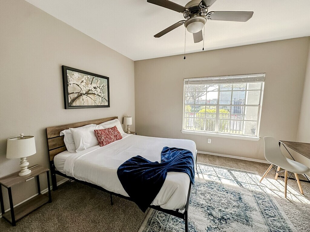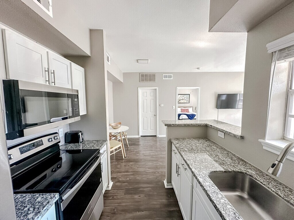 Feel at home in this modern 1-bedroom apartment, offering a comfortable and well-equipped stay. The apartment is fully furnished with all the essentials, including a cozy living room, a functional kitchen, a comfortable bedroom, and a clean, well-maintained bathroom. For added convenience, the living room features a futon, perfect for extra sleeping space. This property does not have an elevator. Enjoy a relaxing and hassle-free experience with quality amenities and toiletries provided to make your stay enjoyable. The apartment is designed to offer everything you need for a practical and pleasant stay. Guests have 1 designated parking spot. Only certified service animals are allowed, and requests to bring a pet must be approved prior to booking. Pet fees are not included in the total reservation price and will be applied after booking. A $500 fee applies for unauthorized pets. Guests have access to their unit, the fitness center, and the seasonal pool. The apartment is conveniently located, allowing easy access to various amenities and attractions. Smoking of any kind is never allowed at this property, including the balcony or patio, as well as all common and outdoor areas of the building. Any smoking violations will result in a $500 fee. Quiet hours are from 10 p.m. to 8 a.m., and parties and large gatherings are strictly prohibited. Check-in is at 4:00 p.m. and checkout is at 10:00 a.m. An early check-in fee of $25 applies for arrivals before 4:00 p.m., and a late checkout fee of $25 applies for departures after 10:00 a.m. Guests cannot check-in early or checkout late without permission. The apartment does not accept mail or package deliveries, and guests are liable for any damage or theft during their stay. [SI]