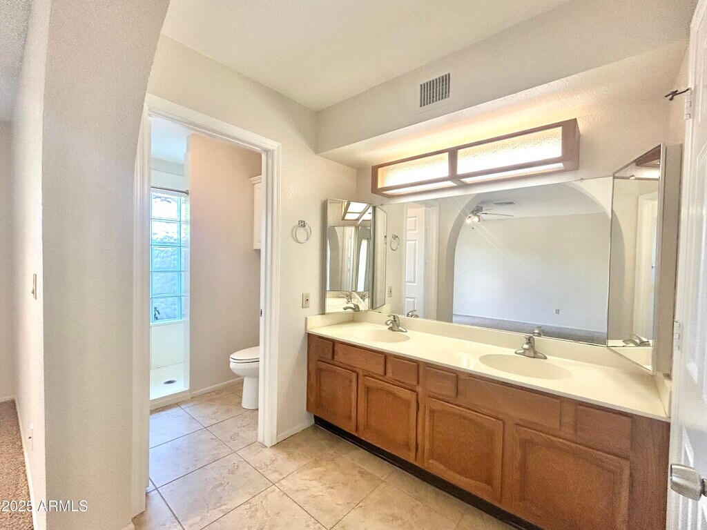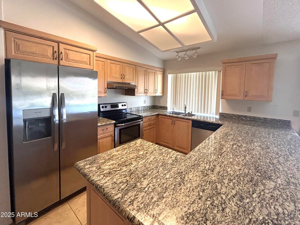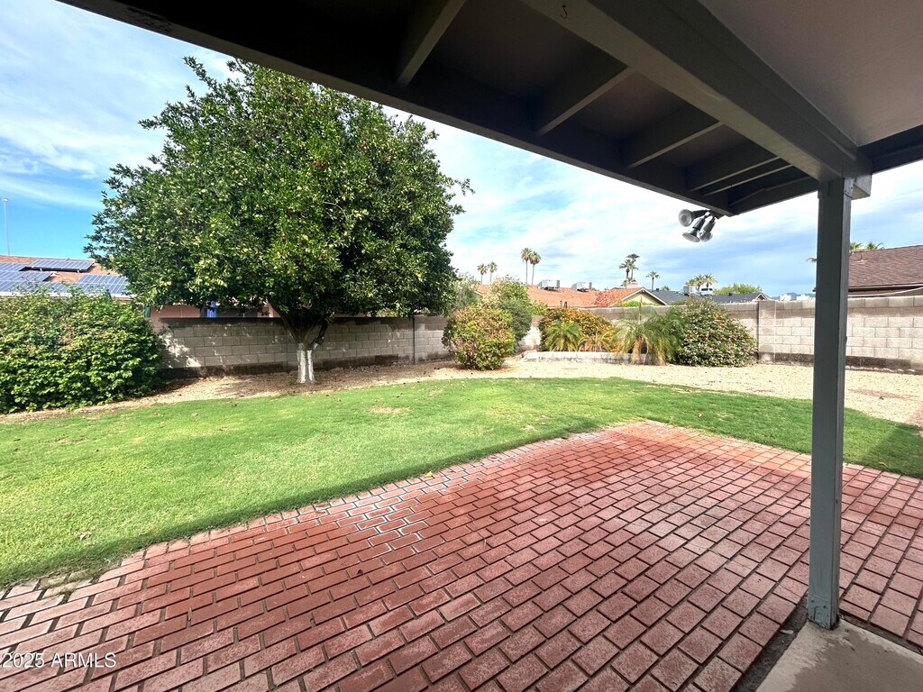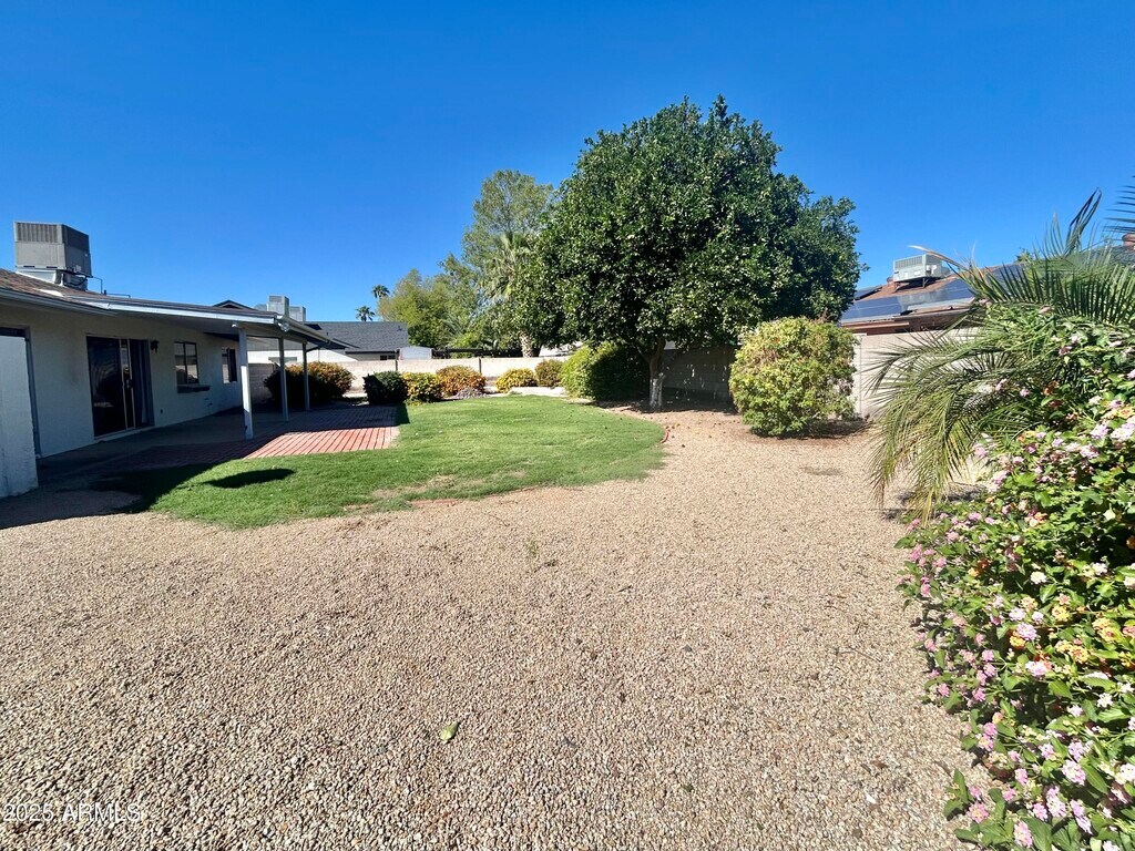 Spacious split floorplan home designed for comfort & convenience! The kitchen features granite countertops,a breakfast bar,abundant cabinet space,& a window overlooking the backyardperfect for enjoying the view. A flexible dining area off kitchen can double as a family room,creating a versatile space that suits your lifestyle. Primary suite is privately tucked on one side of the home,complete w/ a sliding door to backyard,dual sinks,a walk-in closet,& a large walk-in shower w/ a privacy wall that lets in natural light. On the opposite wing,you'll find 2 additional bedrooms & a full bath,plus a generous living room up front for relaxing or entertaining. Thoughtful updates like the new refrigerator (2024) & built-in storage t/o. Just one block from grocery stores,gas,restaurants,& top-rated schools,plus Kierland Commons nearby for shopping & dining. At the end of the street,you'll love having a huge park to walk to as well.