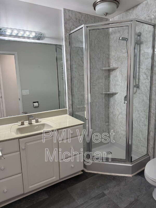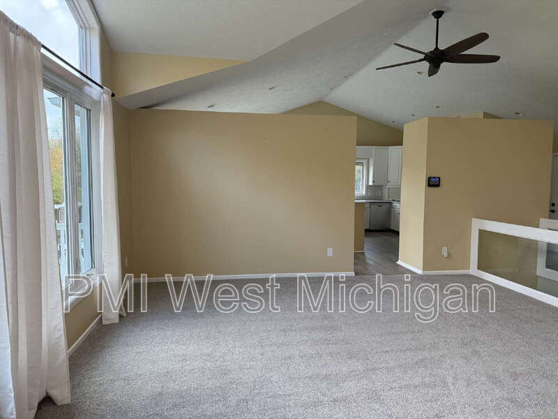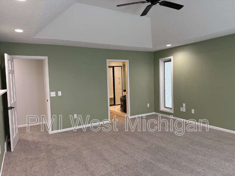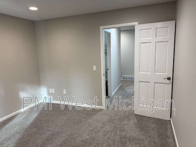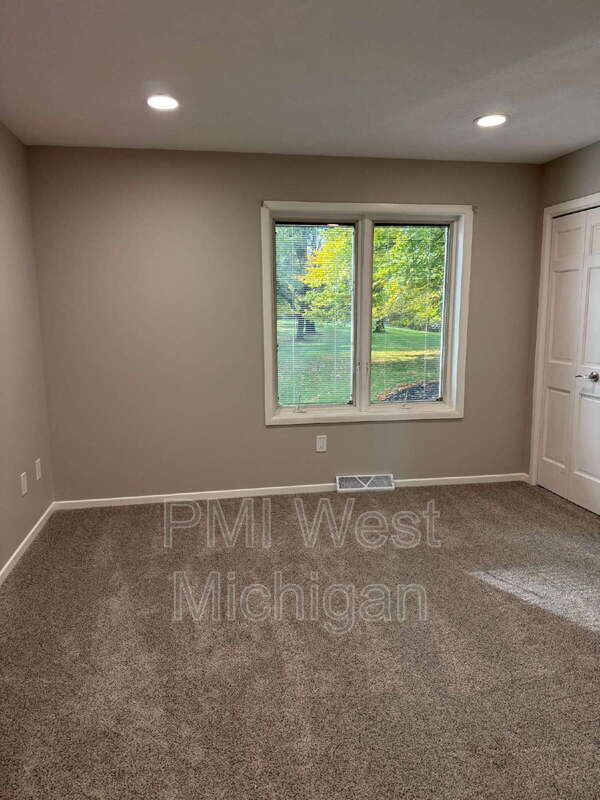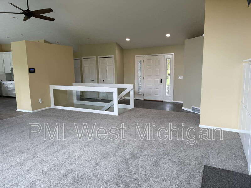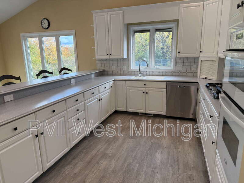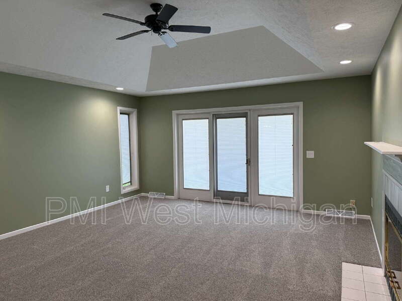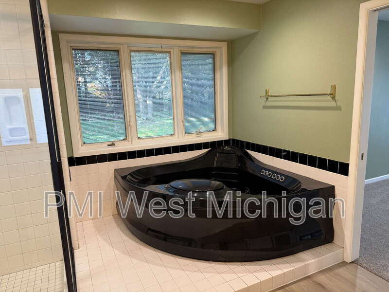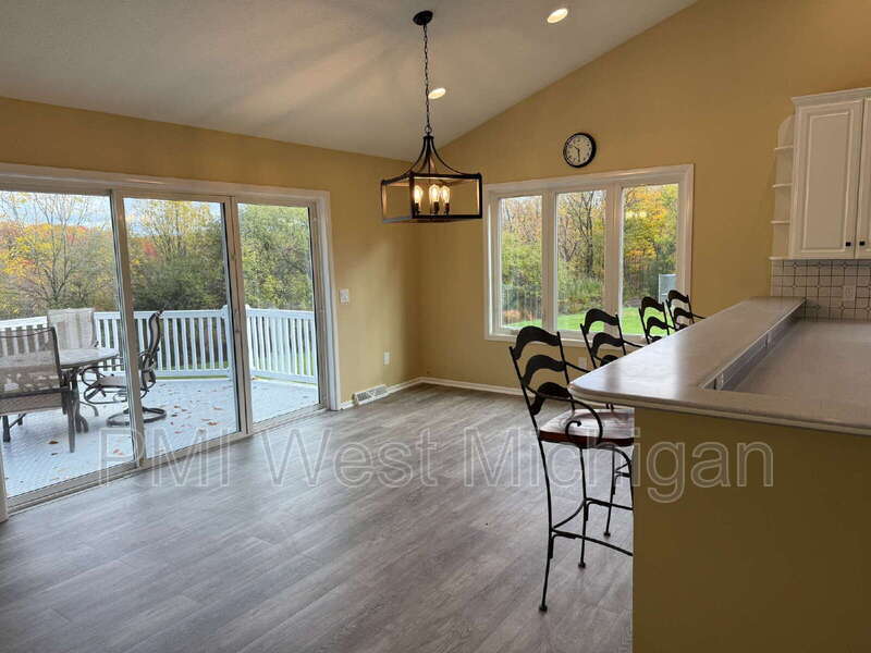 Discover this beautifully updated rental home, perfectly situated for a comfortable, quiet, and convenient lifestyle. You'll love the numerous recent updates, including brand-new flooring, fresh paint, stylish lighting, and modern appliances, offering a move-in ready experience. The spacious main floor is designed for easy living, featuring a large living room, an inviting dining area, a well-appointed kitchen, and handy main-floor laundry. Large windows throughout flood the home with natural light and offer beautiful views of the attractive landscaping outside. The main floor hosts the luxurious master suite, complete with a master bath featuring a jet tub, separate shower, and a large walk-in closet. A second bedroom and a full guest bath with multiple closets complete the main level. The finished lower level is an entertainer's dream, boasting an office space, a wet bar area, a third bedroom, and a full bath. The nice-sized family area offers a walk-out to the yard and a private patio, perfect for enjoying the outdoors. The main floor dining area also steps out onto a deck. Additional features include a two-stall attached garage with a small utility bath for easy cleanup after a hard day's work. This prime location offers a good school system, is a short drive to local stores and entertainment, and provides easy access to beautiful local lakes. Commuting is a breeze with simple access to major driving routes like M6 and US 131, connecting you to many surrounding areas. Don't miss the chance to make this exceptional house your new home! Visit for further information, to schedule a viewing, or to apply.