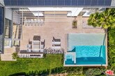 Situated on the Huntington Palisades rim overlooking Portrero Canyon Park with magnificent views of the ocean and breathtaking sunsets, this custom built, architectural home is available for lease on a short or long term basis. Elegant and sophisticated, yet subtle and inviting in its design, this is a home that embraces its environment. Formal entry leads to a great room with fireplace and sliding doors to the entertaining terrace with pool, spa, outdoor shower, BBQ, and grassy area overlooking the wine producing vineyard. 1 ensuite bedroom downstairs. Upstairs lounge and workstations lead to 4 ensuite bedrooms with views. Sonos and Lutron systems. Spared by the fires, this exceptionally crafted home is an unparalleled offering in a magical setting. Photo sequence features the post fire images at the end of the photo feed. See agent for short term rental terms. Can be offered furnished or unfurnished. MLS# 25580461