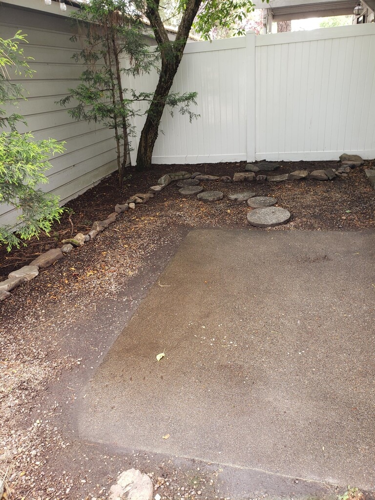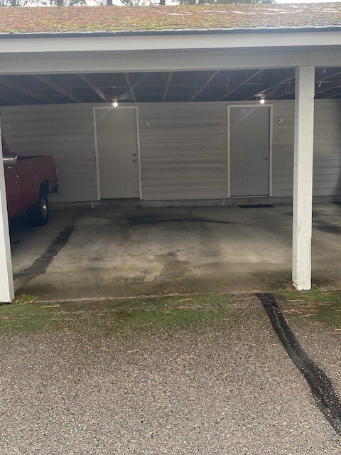 One bedroom and one bathroom condo conveniently located in the center of Coeur d'Alene close to schools and shopping. Very quiet setting in the trees. Beautifully maintained unit with new paint and flooring throughout. Appliances include brand new dishwasher and washer- dryer. Range/Oven, and refrigerator, . Open living space with vaulted ceilings and wood-burning fireplace. Detached carport with locked storage space. Low maintenance. This is a first-floor unit with new paint and flooring. Small fenced yard with patio. Will consider a dog. No cats, No Smoking.