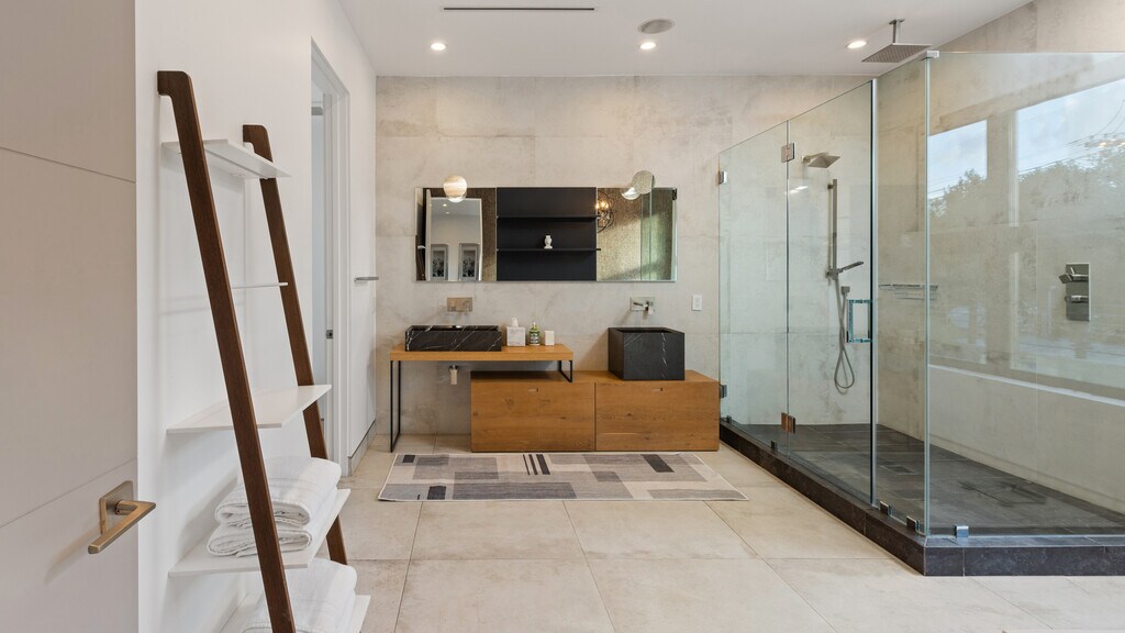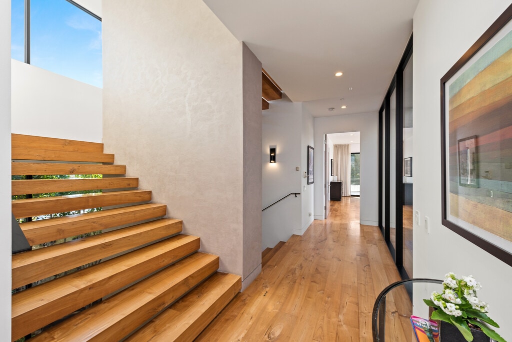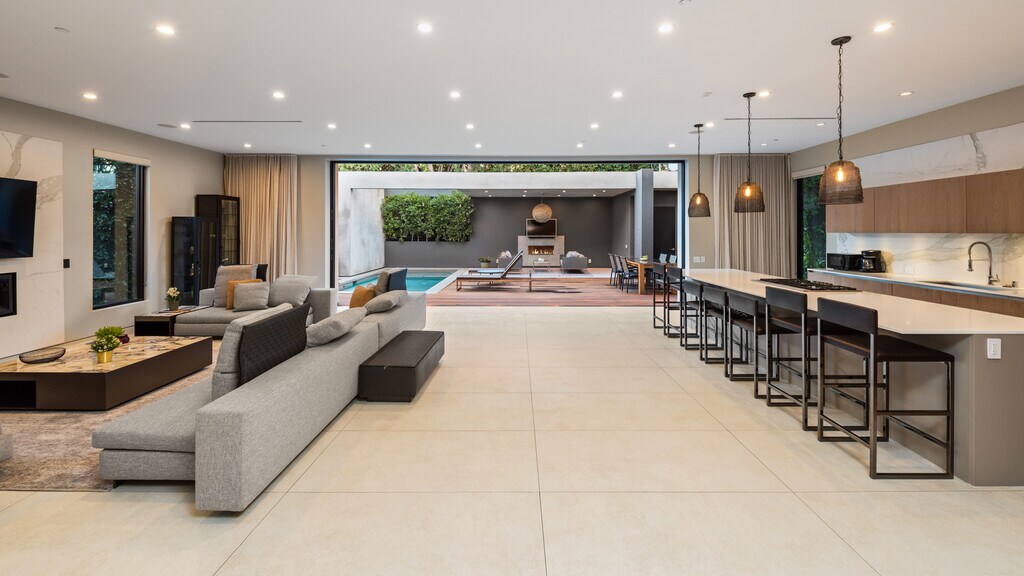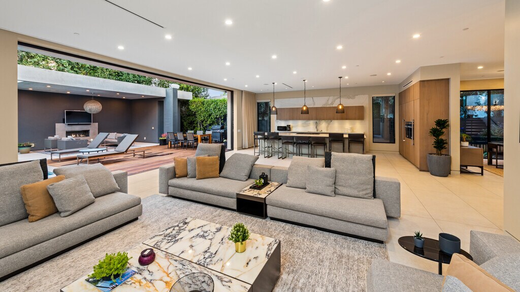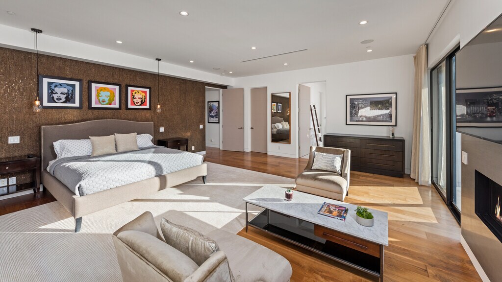 Fully furnished & modern WEHO gated home with rooftop deck near Melrose. 4 Bedrooms & 6 Baths!! Master bedroom, plus a junior master suite + 2 guest bedrooms all with their own en-suite baths, powder room & backyard bath. High ceilings, balconies, patios, floating staircases, sliding pocket glass doors and a rooftop deck. Open floor plan with white Italian porcelain tiles on the main floor with walnut hardwood floors on the second level. Pool, spa, cabana & fireplace. One bedroom downstairs with three bedrooms upstairs including a large junior master suite with it's own balcony. Large and spacious master bedroom with a great walk-in closet and an elegant master bath. 2 car garage + 2 car gated driveway. Laundry area.