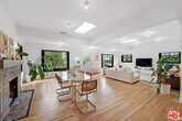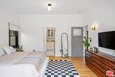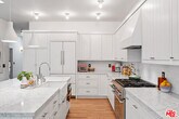 This beautifully reimagined Spanish effortlessly fuses timeless charm, classic architecture, and elevated modern living. With a 3 bed, 3 bath main house + a converted garage with a full bath, this character-rich home delivers everything from soaring skylights to abundant natural light, vintage stained-glass windows and an airy open layout. At the heart of the home sits a spacious cook's kitchen, thoughtfully designed for both form and function. It features a large center island, Carrara marble countertops, handcrafted tile, and sleek custom cabinetry ideal for casual dining or upscale dinner parties. The primary suite offers a peaceful haven and is fit with a walk-in closet, a spa-like en-suite bath, and bi-folding doors showcasing calming views and access to the manicured backyard and pool. A private and lush backyard invites seamless indoor-outdoor living, equipped with a grassy sitting area, patio and pool. The bonus converted detached garage provides its own functional living space, a bedroom and full bathroom, adding incredible flexibility perfect as a guest suite, creative studio, or the ultimate poolside lounge. Tucked away on a quiet street just moments from the best of Melrose and Beverly, this one hits every note: timeless, stylish, and completely dialed in. MLS# 25603941