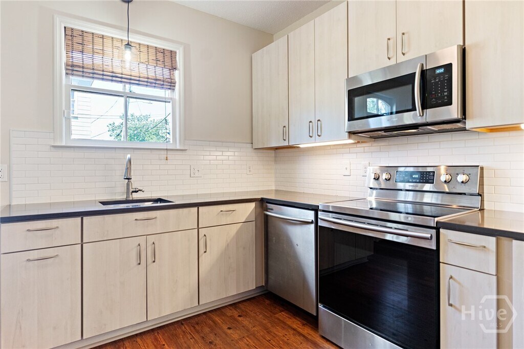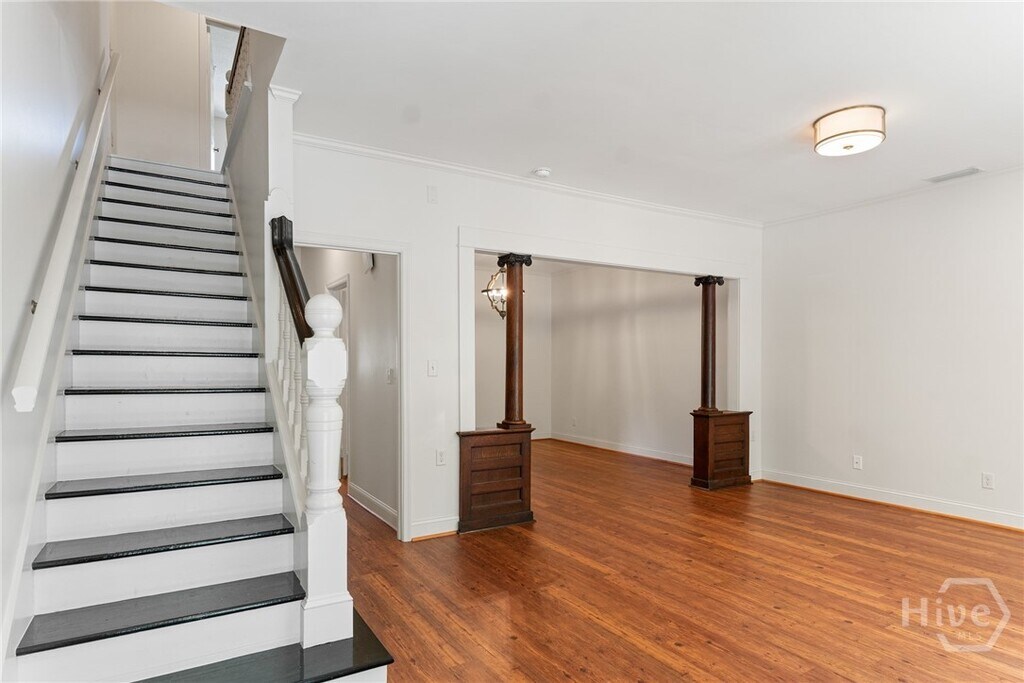 Nestled in Savannah’s Historic Landmark District,this residence offers the perfect blend of convenience,charm,and tranquility. The main level features spacious,light-filled rooms with gleaming hardwood floors and timeless historic details. A thoughtfully designed kitchen boasts beautiful cabinetry with built-in conveniences,solid-surface counters,newer appliances,and elegant lighting—ideal for both everyday living and inspired cooking. A nearby laundry area with a high-efficiency washer and dryer,generous pantry,and a delightful powder room add modern comfort. Step outside to your private courtyard with a brick patio and planting beds—a serene retreat to be enjoyed year-round. Upstairs,discover two large bedroom suites,each with abundant storage and picturesque neighborhood views. One offers a tub-shower combination,while the other showcases a walk-in shower. Throughout the home,custom wood shutters add both function and style.