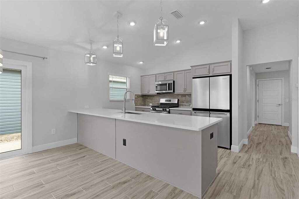 WATER VIEW • PRIVATE BACKYARD • LONG TERM RENTAL. Welcome home to Dingman Way,where comfort,style,and Florida living come together beautifully. This move-in-ready 3-bedroom,2-bath home is nestled in a peaceful,well-maintained community and features a serene water view with a private,low-maintenance backyard—perfect for relaxing and enjoying the Florida lifestyle. Step through the screened entry and into a bright,open floor plan filled with natural light from oversized windows that frame the stunning water view. New custom interior paint and all-tile flooring throughout give the home a fresh,modern feel with no carpet to maintain. The spacious living and dining areas flow seamlessly into the kitchen,making it ideal for everyday living and entertaining. The kitchen shines with quartz countertops,modern appliances,ample cabinetry,and a convenient breakfast bar for casual meals or morning coffee. The primary suite is a true retreat,offering dual walk-in closets and a private ensuite bath with a Roman-style walk-in shower. Two additional bedrooms and a full guest bath provide comfortable space for family or visitors. You’ll also appreciate the indoor laundry room with wash tub,perfectly sized for convenience. Outdoor living is a highlight with the screened lanai featuring retractable shades,ideal for enjoying breezes,sunsets,or quiet mornings. The private,low-maintenance backyard means more time enjoying life and less time on upkeep. The garage is upgraded with a finished floor and split A/C unit for year-round comfort. Enjoy resort-style community amenities and an unbeatable location just a golf cart ride to Eastport,Sawgrass and Brownwood Town Squares,championship golf,recreation centers,shopping,dining,and major highways—offering easy access to all that Central Florida has to offer. Occupant will be responsible for all utilities - electric,gas,water,sewer,trash,Wifi and monthly amenity fee. MLS# O6377253