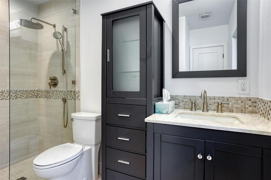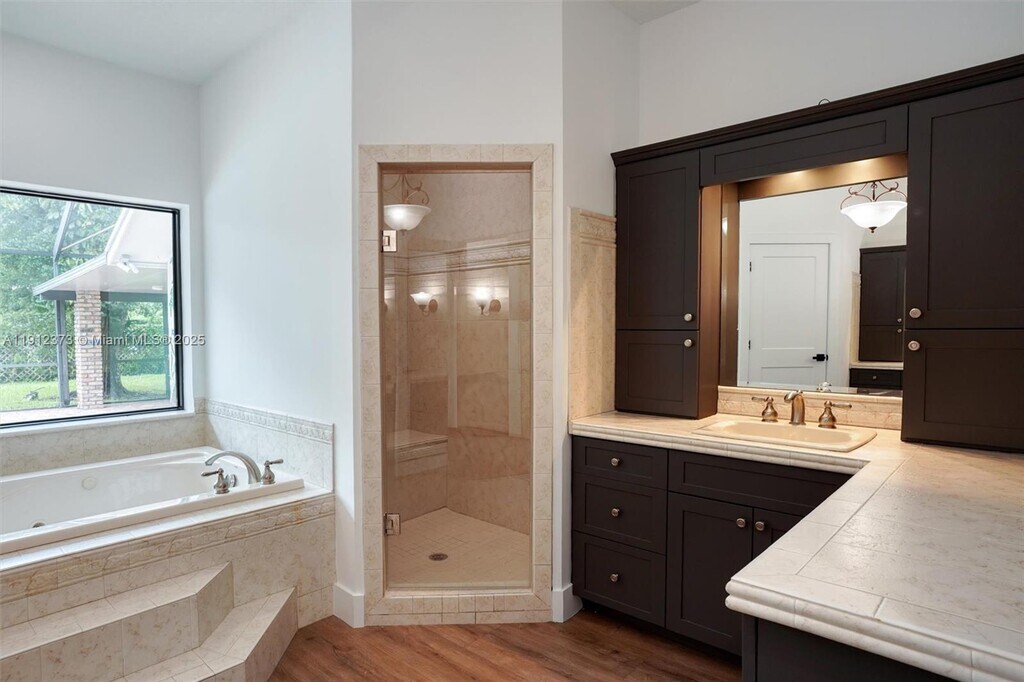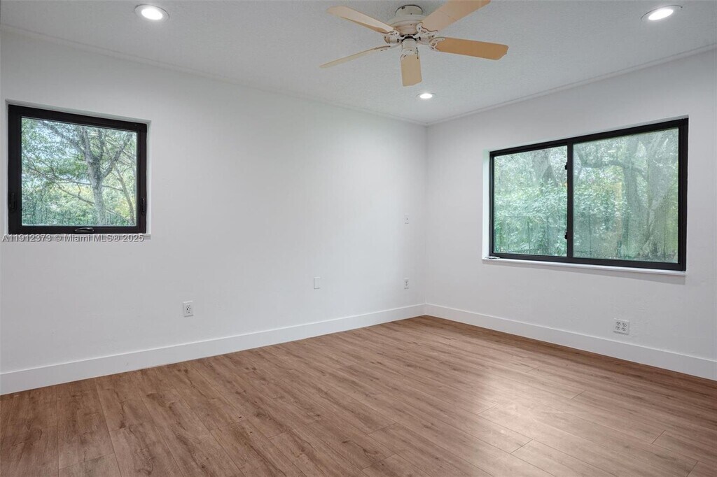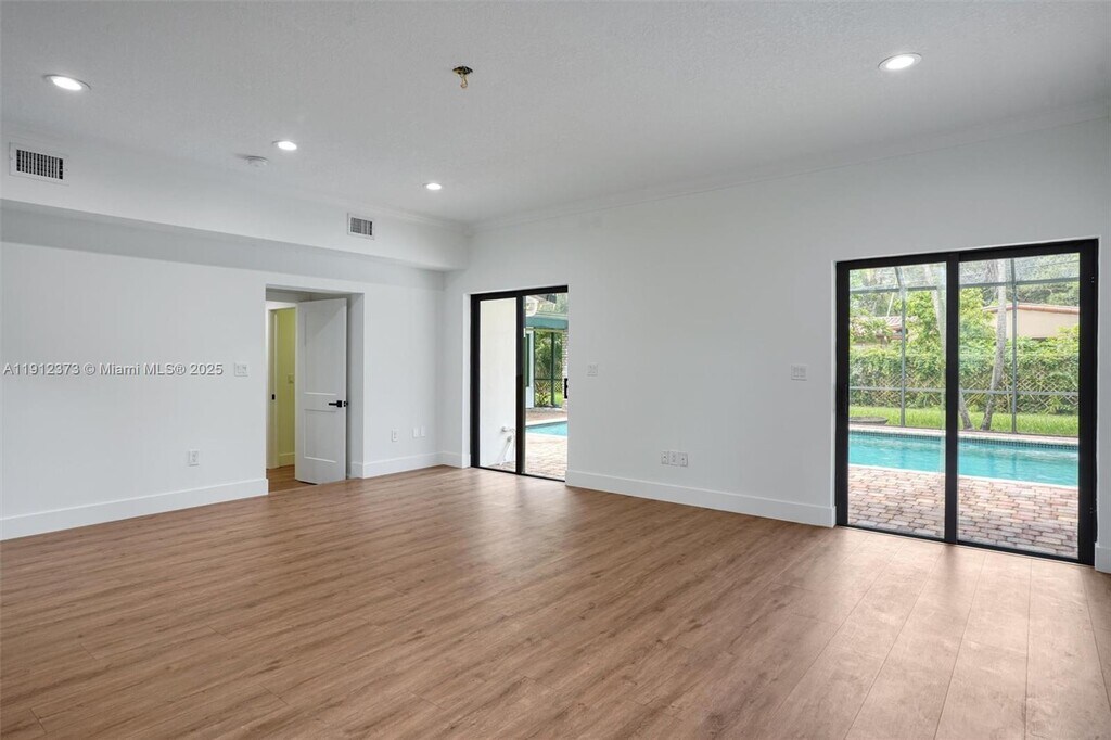 North Pinecrest home, nestled amongst oaks on a tree lined street. Fully gated for privacy. Light and bright interior with contemporary finishes and low E impact windows and doors. This 6 bedroom, 4 bath home is 3,876 sq ft. Two bedrooms are en-suite while a third bedroom has a door with access to the side yard. Spacious master bedroom is 17 ft by 19 ft. In addition, it has separate his and hers walk-in closets and dual bathroom vanities. Ubiquiti 5G Wi-Fi hot spots. It's heated pool is an oversized 17 ft by 35 ft and is fully screened. This 81 of an acre (35,760 sq ft) lot has ample space to park your boat or RV. Located in the highly sought after Pinecrest Elementary school district and near top-rated private schools.