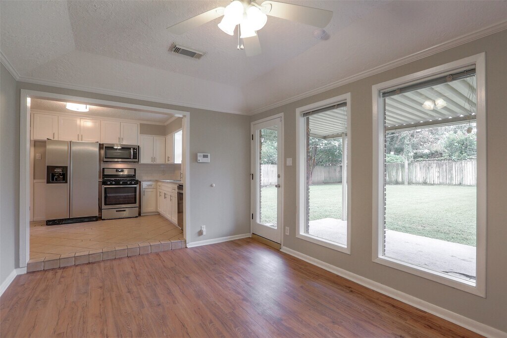 3 Bedroom,1 and 1/2 bath home with two living areas and a large kitchen,breakfast and dining space. 1 Car attached garage. Large fully fenced backyard,wood and tile floors throughout home with shutters on front windows. Located near jogging and biking trail. Washer,dryer and refrigerator can stay for tenant. MLS# 51896849