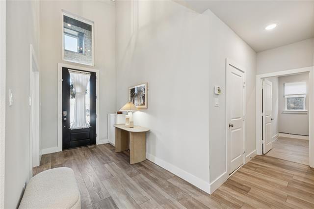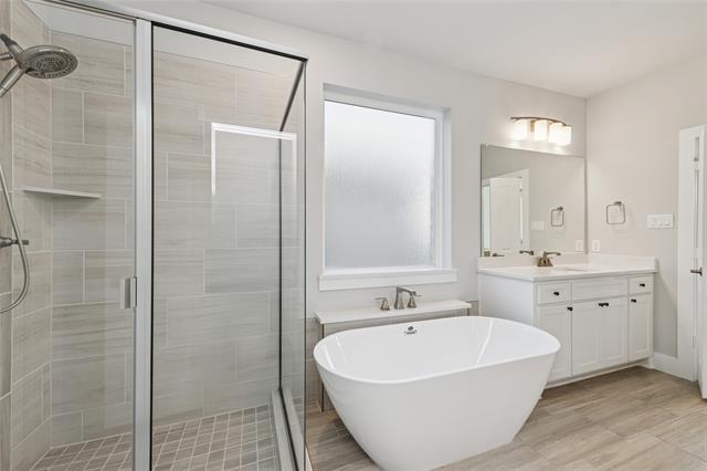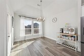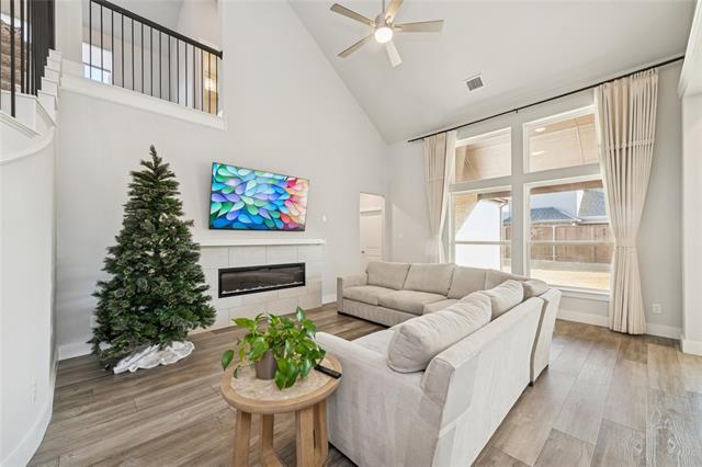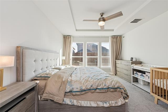 Located in highly sought-after Prosper ISD, this thoughtfully designed two-year-old, two-story home offers a flexible and functional floor plan ideal for modern living. The first floor welcomes you with a covered porch and an inviting foyer, leading into an open concept living space that seamlessly connects the kitchen, dining, and family room-perfect for both everyday comfort and entertaining. The south-facing primary bedroom is filled with natural light throughout the day, while the south-facing backyard provides year-round outdoor enjoyment with abundant sunshine. A private first-floor bedroom or study offers an ideal guest suite, home office, or multigenerational living option. This energy-efficient home features a whole-home water softener system for added comfort and convenience. The backyard includes a raised garden bed, which is perfect for growing your own vegetables or flowers. The attached garage, epoxy coated, is enhanced with an overhead storage rack to maximize vertical space and includes an EV charger, offering a valuable bonus for electric vehicle owners. Upstairs, a striking curved staircase opens to a spacious central landing with railing, creating an airy and connected feel. The second level features multiple generously sized bedrooms arranged for privacy, along with well-appointed baths and ample closet space. The versatile layout is well suited for family living, work-from-home needs, or visiting guests. Residents enjoy community amenities including a walking trail, with a community pool scheduled to open by this summer.