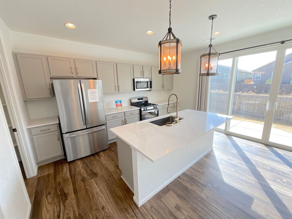 Visit for Information on Viewing, Qualifying, Pets and Applying! Call to schedule a viewing anytime! Hansen Ranch Community! Built in 2022! 2 Car Garage with Overhead Shelving! Front Covered Porch! Large Rear Concrete Patio with View of Pikes Peak! Fully Fenced Backyard! Refrigerated Air! Ceiling Fans! Carpet, Tile and LVP Flooring! TV-Mounts Pre-Installed! Formal Living/Dining Room! Quartz Countertops in Kitchen! Stainless Steel Kitchen Appliances! Gas Range/Stove! Countertop Glass Rinser! Loft! Large Walk-In Master Closet! Master Bath Sliding Barn Door! Laundry Hookups! Crawl Space! Trash and Recycle Included! PETS: Dogs only, no cats permitted. 40 pound limit. No fishtanks accepted. Considered/accepted on a case-by-case basis. You will need to submit an application in order for us to see if your pet will be accepted. Potential pet rent up to $35/pet per month. Potential pet security deposit up to $300/pet. HOA Pet Policy: No horses, livestock, birds, fowl, poultry, reptiles, insects. No pets kept for any commercial purpose. **Required Tenant Benefit Package: $38/month. -- KEEP IN MIND THAT YOU WILL BE REQUIRED TO PAY A NON-REFUNDABLE APPLICATION FEE OF $50 IN ORDER FOR US TO PROCESS YOUR APPLICATION UNLESS YOU WOULD LIKE TO SUBMIT A PORTABLE SCREENING REPORT THAT HAS BEEN PREPARED BY A CONSUMER REPORTING AGENCY WITHIN 30 DAYS PRIOR TO THE DATE THAT YOUR APPLICATION IS SUBMITTED. PROSPECTIVE TENANTS HAVE THE RIGHT TO PROVIDE BRICKLEYS WITH A PORTABLE TENANT SCREENING REPORT, AS DEFINED IN SECTION 38-12-902 (2.5), COLORADO REVISED STATUTES. BRICKLEYS IS PROHIBITED FROM CHARGING THE PROSPECTIVE TENANT A RENTAL APPLICATION FEE OR CHARGING THE PROSPECTIVE TENANT A FEE TO ACCESS OR USE A VALID PORTABLE TENANT SCREENING REPORT. IF YOU WOULD LIKE TO PROVIDE A VALID PORTABLE SCREENING REPORT IN LIEU OF PAYING AN APPLICATION FEE, PLEASE SKIP THE APPLICATION FEE PAYMENT SECTION OF THIS APPLICATION PROCESS AND WE WILL FOLLOW UP WITH YOU TO PROVIDE ADDITIONAL DETAILS FOR MOVING FORWARD. PORTABLE SCREENING REPORTS MUST BE MADE AVAILABLE TO BRICKLEYS DIRECTLY BY THE CONSUMER REPORTING AGENCY OR THROUGH A 3RD PARTY WEBSITE THAT REGULARLY ENGAGES IN THE BUSINESS OF PROVIDING CONSUMER REPORTS AND COMPLIES WITH ALL STATE AND FEDERAL LAWS.