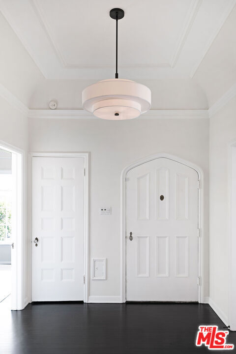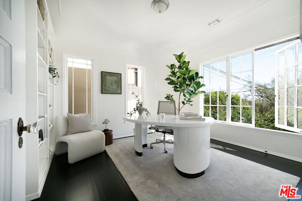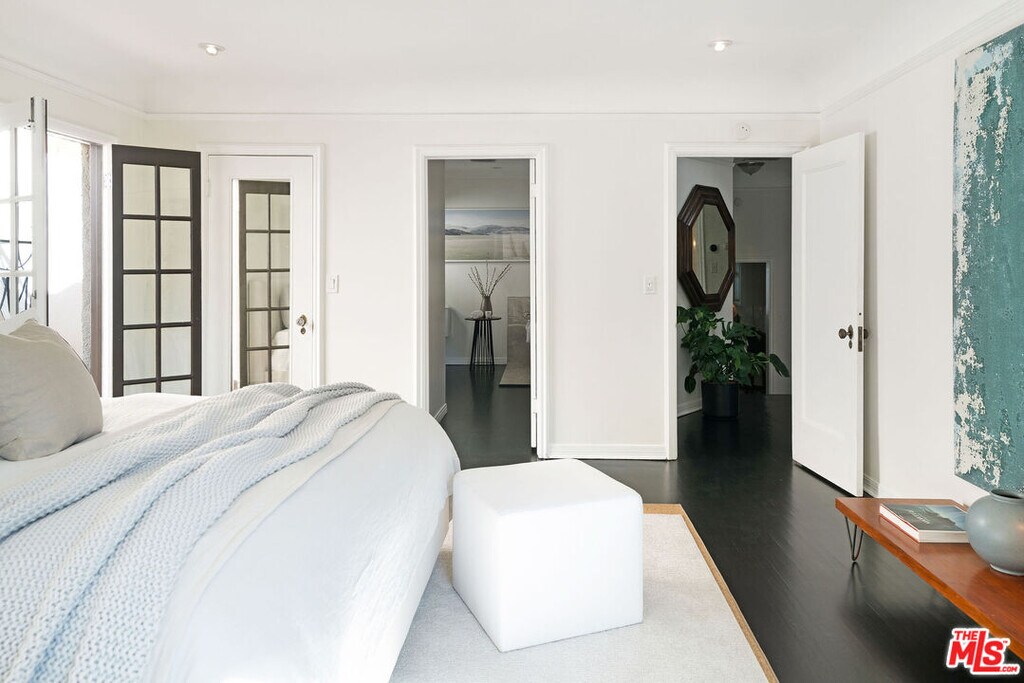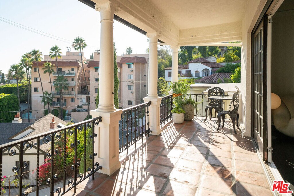 This classic 1926 Spanish style home offers a 3 bed, 3 bath main house with an attached, but private guest quarters below. Perfect for visitors or working from home as this 1 bed, 1 bath has a completely separate entrance. As you enter the gated property, you will note the beautiful terra-cotta tile, the flowering pear tree, and the two front portico terraces with their iconic archways, perfect for dining or enjoying the outdoors without much maintenance. With views of the city, the mountains, and beyond, this Hollywood Hills pied-a-terre is incredibly chic and the updates made perfectly marry the memorable with the modern. Meticulously maintained, this home is appealing to those who have an appreciation for historic architecture as you have restored hardwood floors, decorative mantles, coved ceilings, crown molding, and original casement windows. Perhaps the most impressive though, is the primary bedroom and bathroom with new soaking tub and porcelain shower, plus original casement doors that open up to the back veranda where you can relax and once again take in the cityscape. When you're at Holly Mont you feel as though you've been transported somewhere truly magical. It is both peaceful and private, timeless and elegant. Centrally located with easy access to the rest of the city and the valley, but conveniently located near Beachwood and Franklin Village. A lease greater than one year is preferred. MLS# 25619303