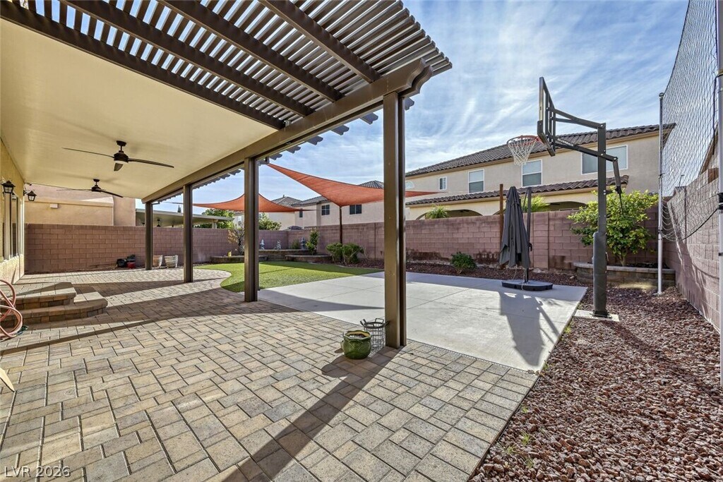 RENT PRICE INCLUDES TRASH, SEWER AND SOLAR. SAVE MONEY ON ELECTRICITY BILLS. Spacious 4BD/3BA home in Coronado Ranch SW area! Open floor plan with large great room, fireplace, dining area, dry bar, and den. Kitchen features granite counters, large island, and ample cabinet space. Upstairs includes huge loft, study area, and all bedrooms with walk-in closets. Backyard offers brick paver patio, artificial turf, basketball half-court, and fruit-bearing trees. Three-car garage with EV charging, solar panels, and security system with cameras. Convenient Southwest location near shopping, dining, and freeway access. Contact listing agent to show details.