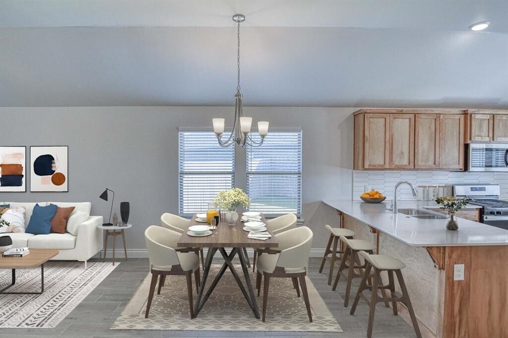 This stunning Craftsman-style home comes with a nice-sized covered front porch and back patio overlooking a fully fenced yard! Inside lies an open concept layout with lovely wood-like tile flooring throughout the living space. The split plan allows distance between the primary suite and secondary beds/bath. The kitchen boasts stainless appliances with a gas cook range,quartz counters,a breakfast bar,and large window for that added natural light! The primary suite comes with double vanities,large walk-in closet,as well as a tile-surrounded soaking tub and stand-up shower! The Somers Pointe neighborhood amenities include a playground and splashpad for outdoor enjoyment! Owner licensed.