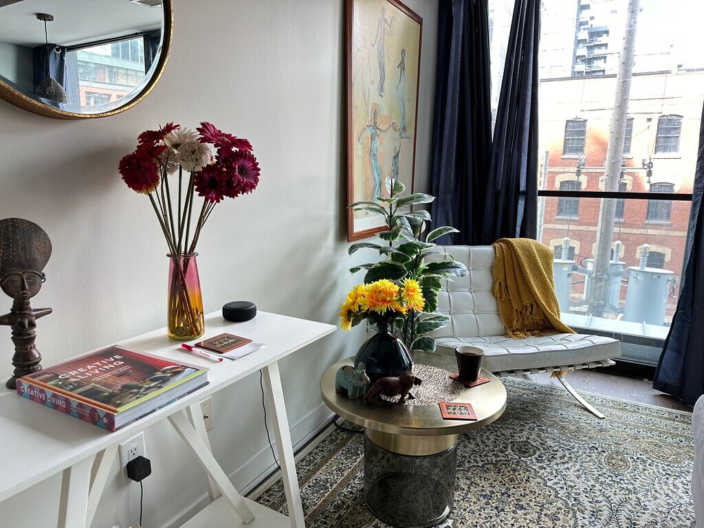 Modern boutique 1-bedroom condo in the heart of King West, Toronto’s most vibrant lifestyle district. This thoughtfully designed 500 sq ft unit offers a comfortable and functional stay, ideal for both short visits and extended stays. Enjoy a bright living space with city views, a Juliet balcony for fresh air, and a fully equipped kitchen for cooking at home. The bedroom features a comfortable queen bed, and the unit includes in-suite laundry for added convenience. Located in a secure concierge building with access to a fully equipped gym and a standout amenity — a private rooftop pool and restaurant, offering a rare elevated experience right at home. Step outside to everything King West is known for: top restaurants, nightlife, cafes, and everyday essentials. With a 100 Walk Score and 24/7 transit at your doorstep, getting around the city is effortless. You’re within walking distance to major Toronto landmarks including the CN Tower, Rogers Centre, and Scotiabank Arena, making this an ideal base for events, business, or exploring the city. Perfect for professionals, couples, or guests relocating to Toronto who want to experience the city with both energy and convenience.
